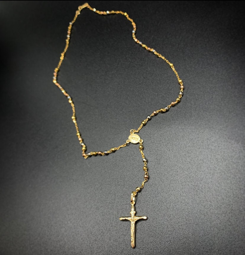 10K Gold Rosary,Rosary Necklace,Gold Rosary Necklace,Tri-Tone Gold ...