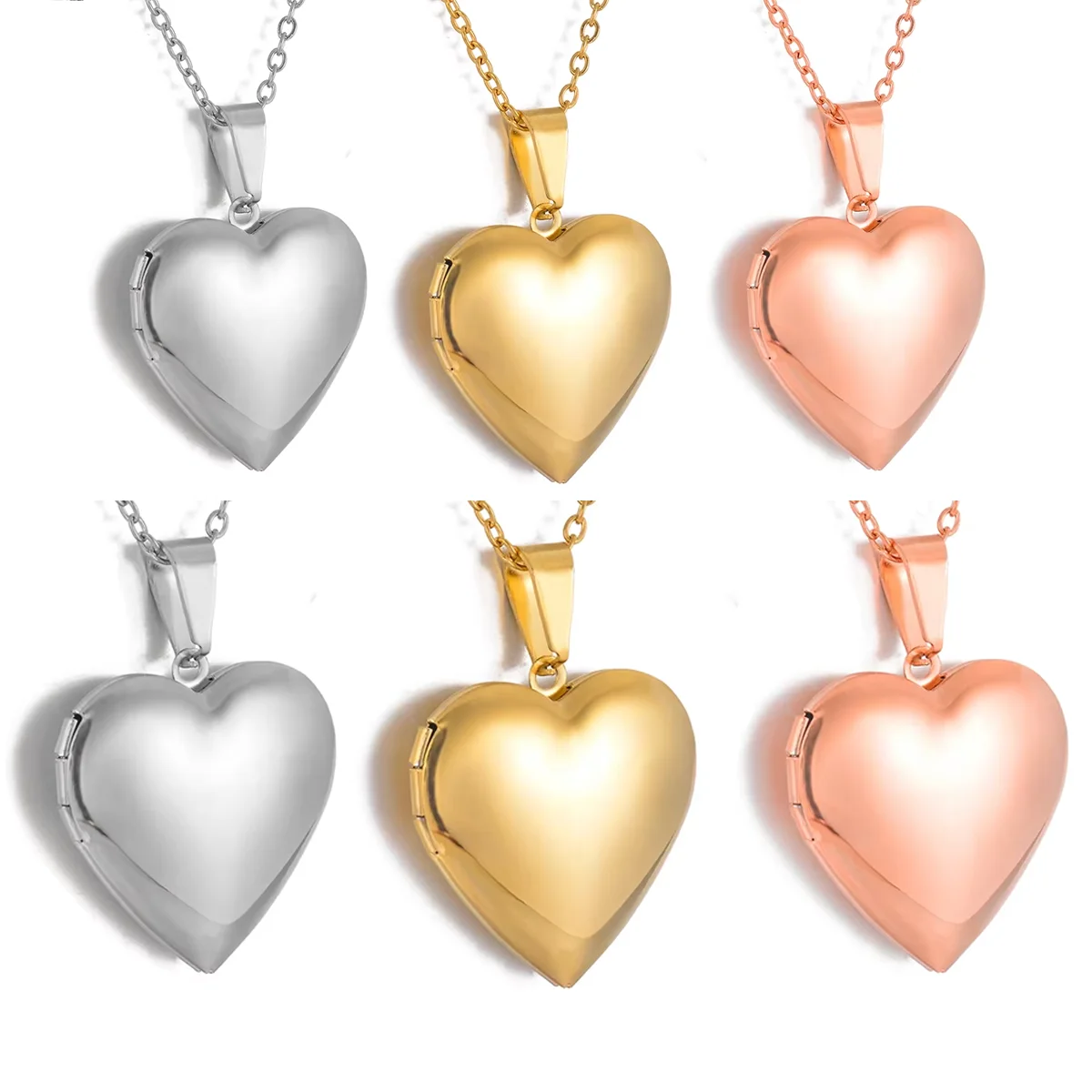 Stainless Steel Polished Heart Photo Frame Locket Necklace Pendant Pictures Locket Jewelry Party Gif...