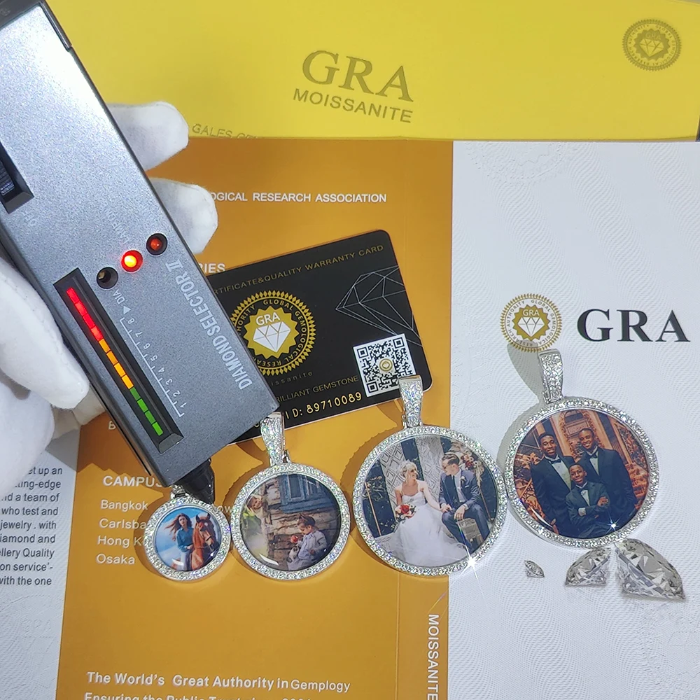 Fine Jewelry Circle Memory Picture Medallions Moissanite 925 Sterling Silver Custom Photo Pendant Ne...