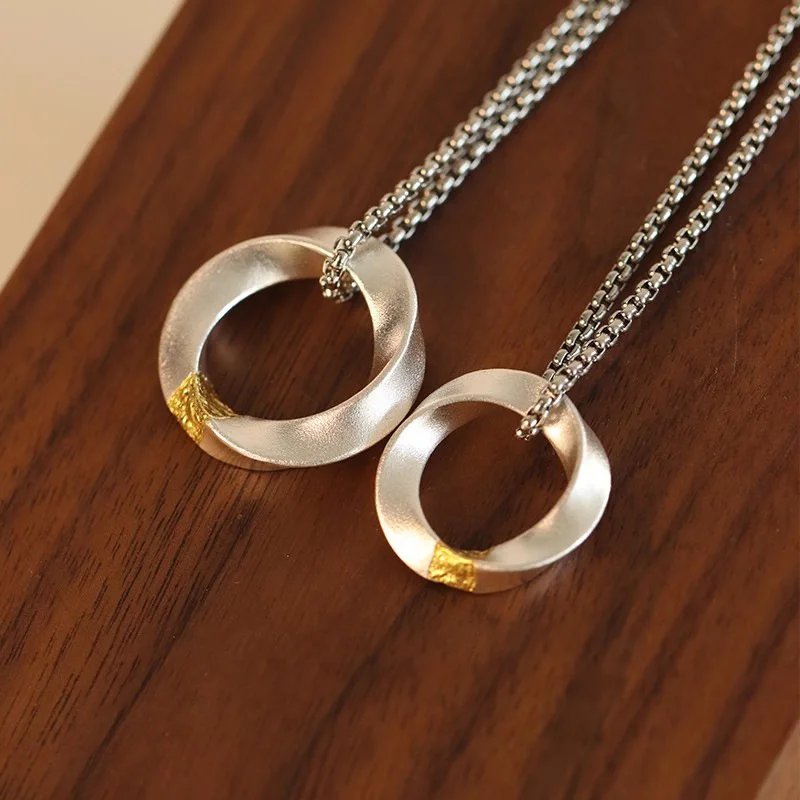 Collar Pareja Mobius Ring Couple Necklace Circle Ring Pendant Coupl...