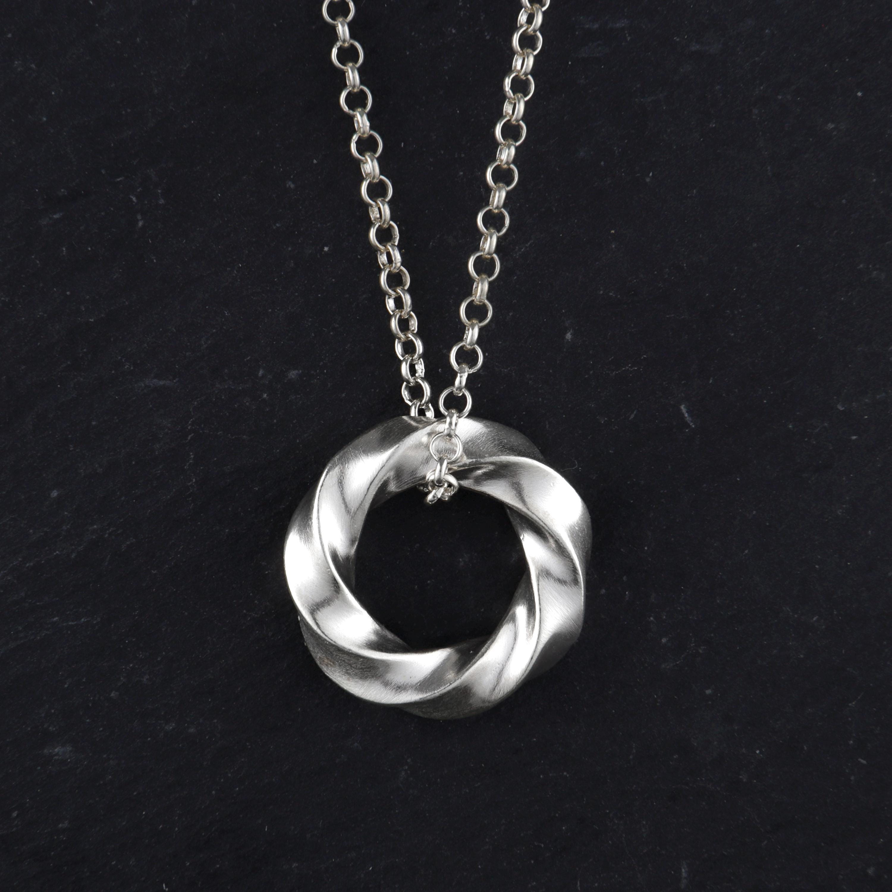 Mens 925 Silver Mobius Strip Ring Necklace Sterling Silver Mobius C...