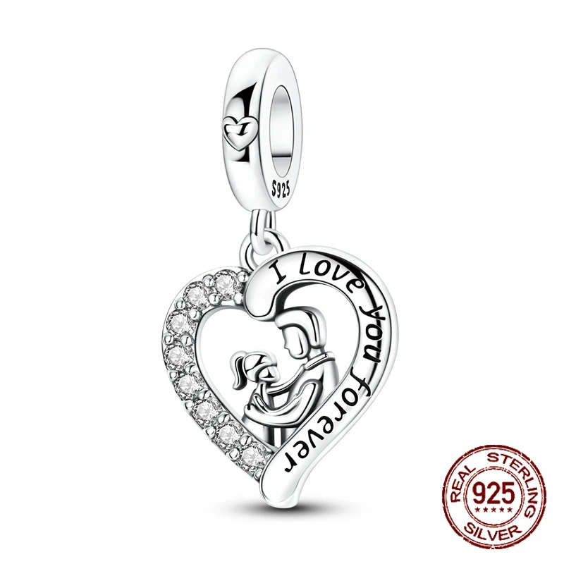 925 Sterling Silver I Love You Forever Father-Daughter Pendant Fit Original Charm Bracelet Women DIY...