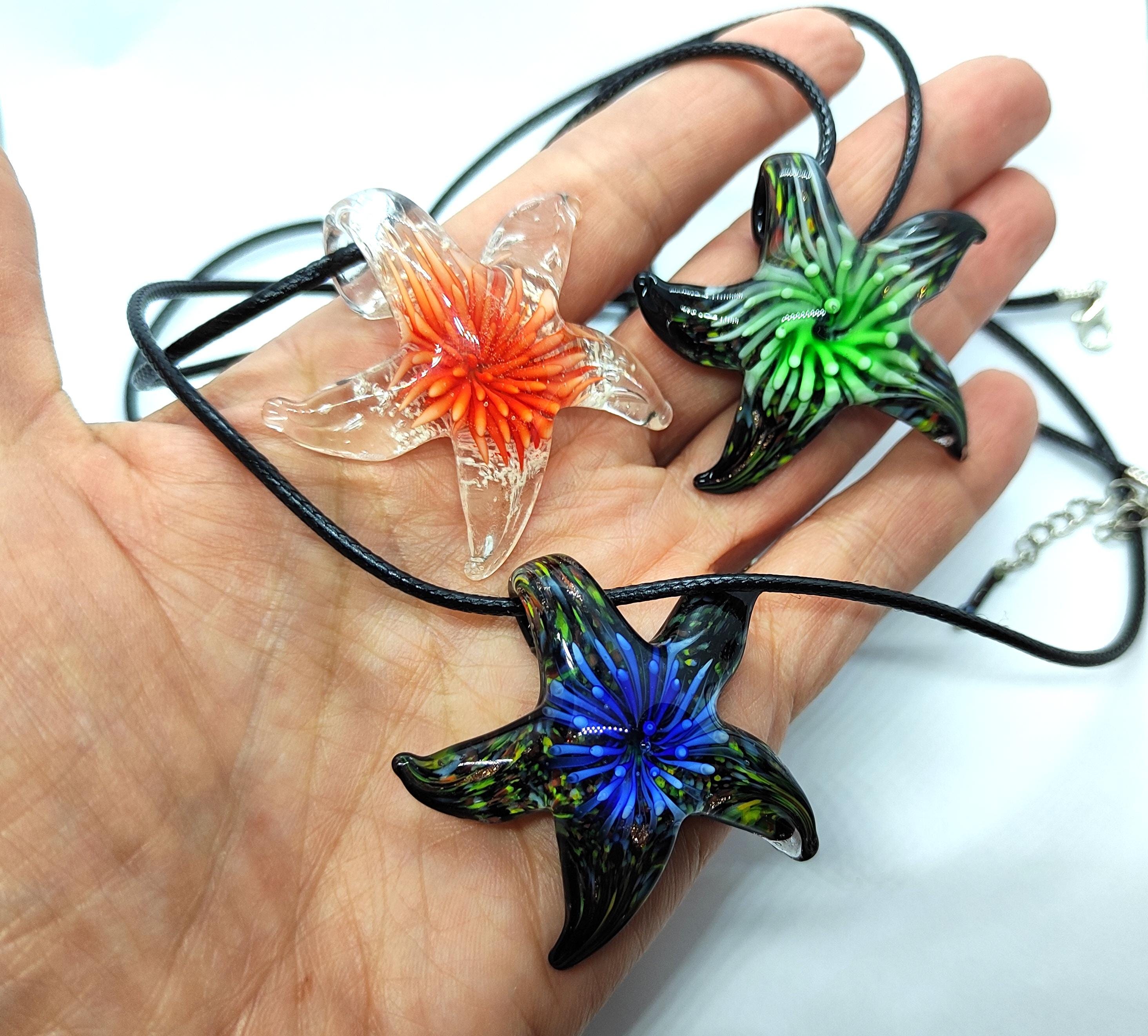 Murano Glass Necklace, Starfish Necklace, Murano Glass Pendant, Mur...
