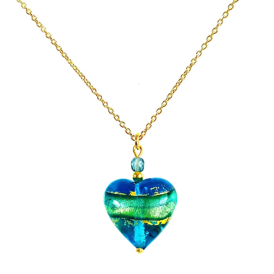 Murano Glass Heart Necklace 'Aqua Mare' by I Love Murano, Murano Gl...