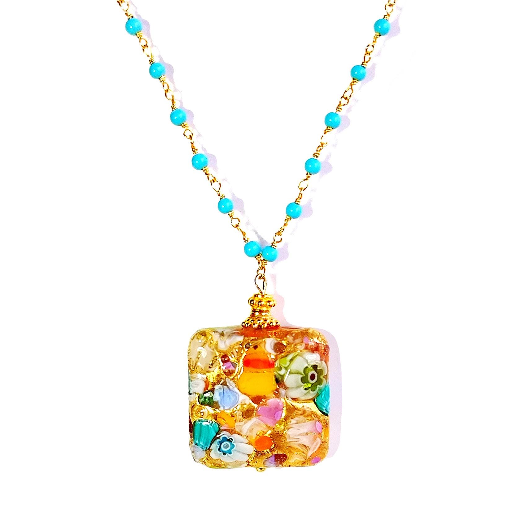 Murano Glass Gold Square Bead Necklace with Millefiore by I Love Mu...