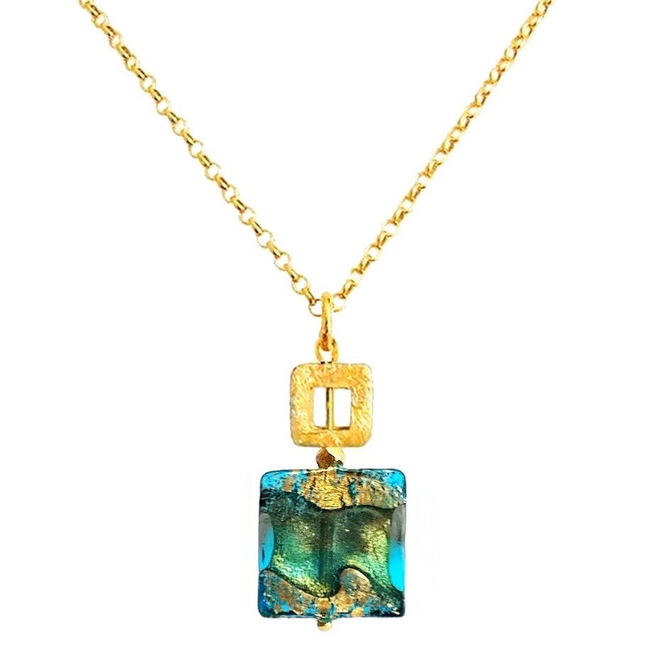 "Murano Square Glass Bead Necklace on 24k Gold Vermeil Chain ''Quadro di Oro' by I Love Murano ...