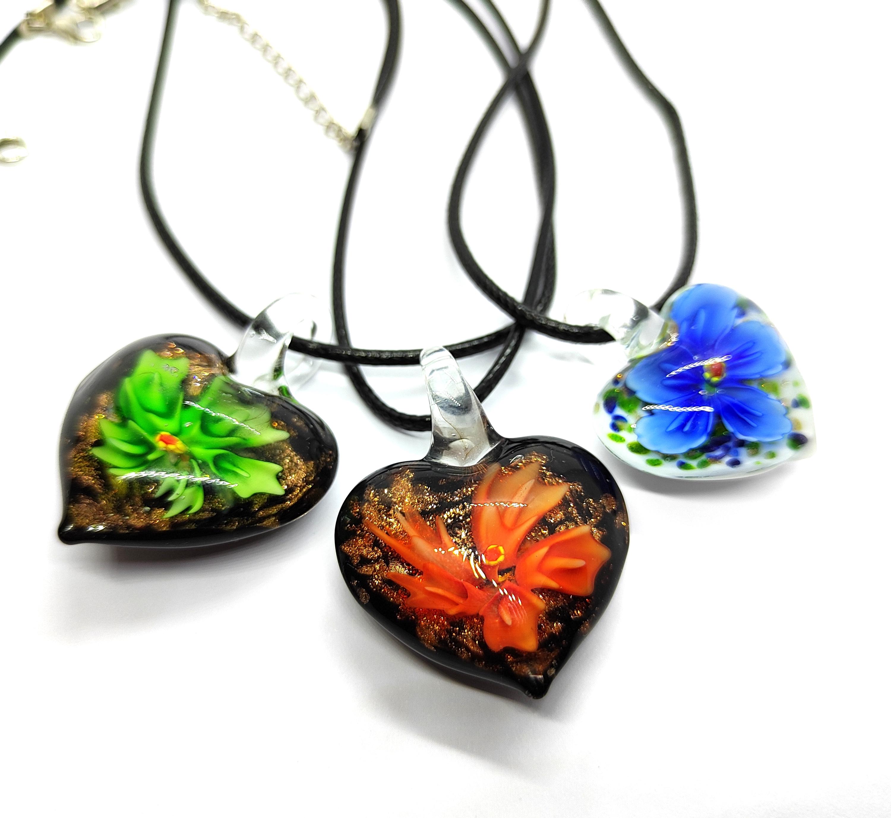 Murano Flower Heart, Murano Glass Necklace, Heart Necklace, Murano ...