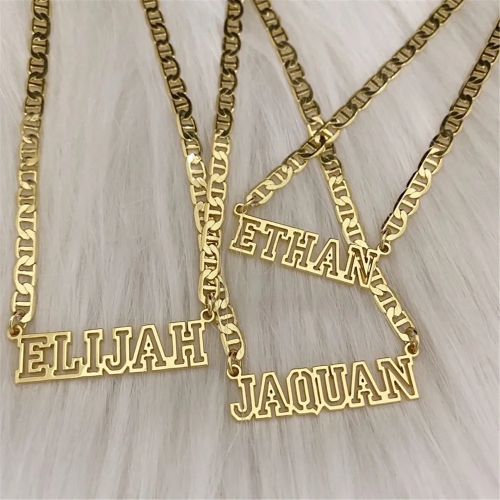 LOVE&NAME Personalized Custom Name Necklace Pendant Gold Color Flat Chain Customized Nameplate N...