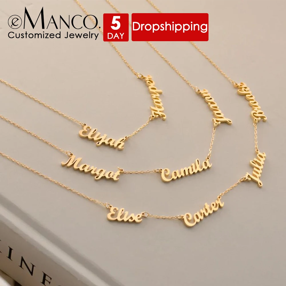 eManco Customized Multi-Name Necklace Stainless Steel Gold Plated 2-4 Name Tag Pendant Fashion Party...