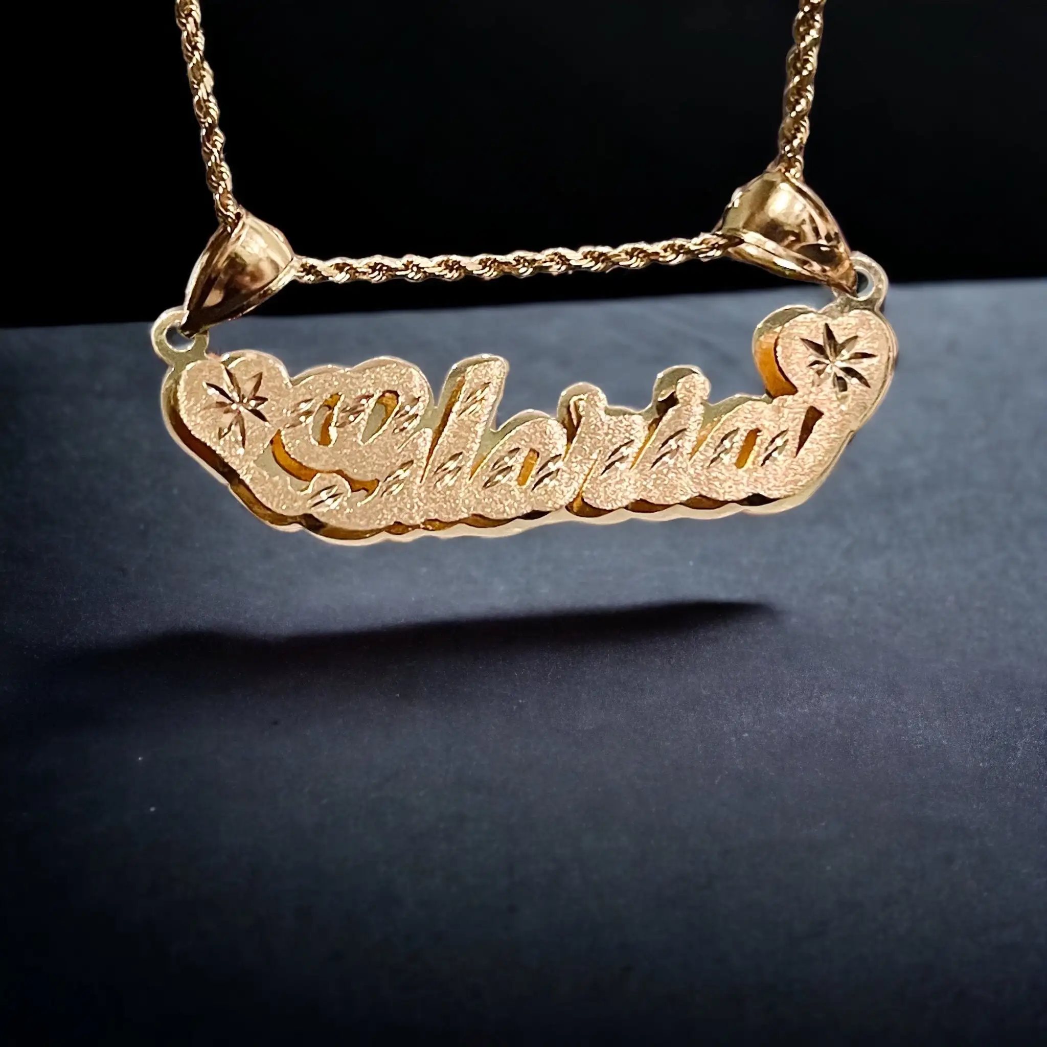 18k Gold Plated Double Name Plate 3D Name Pendant Sand Pressed Neck...