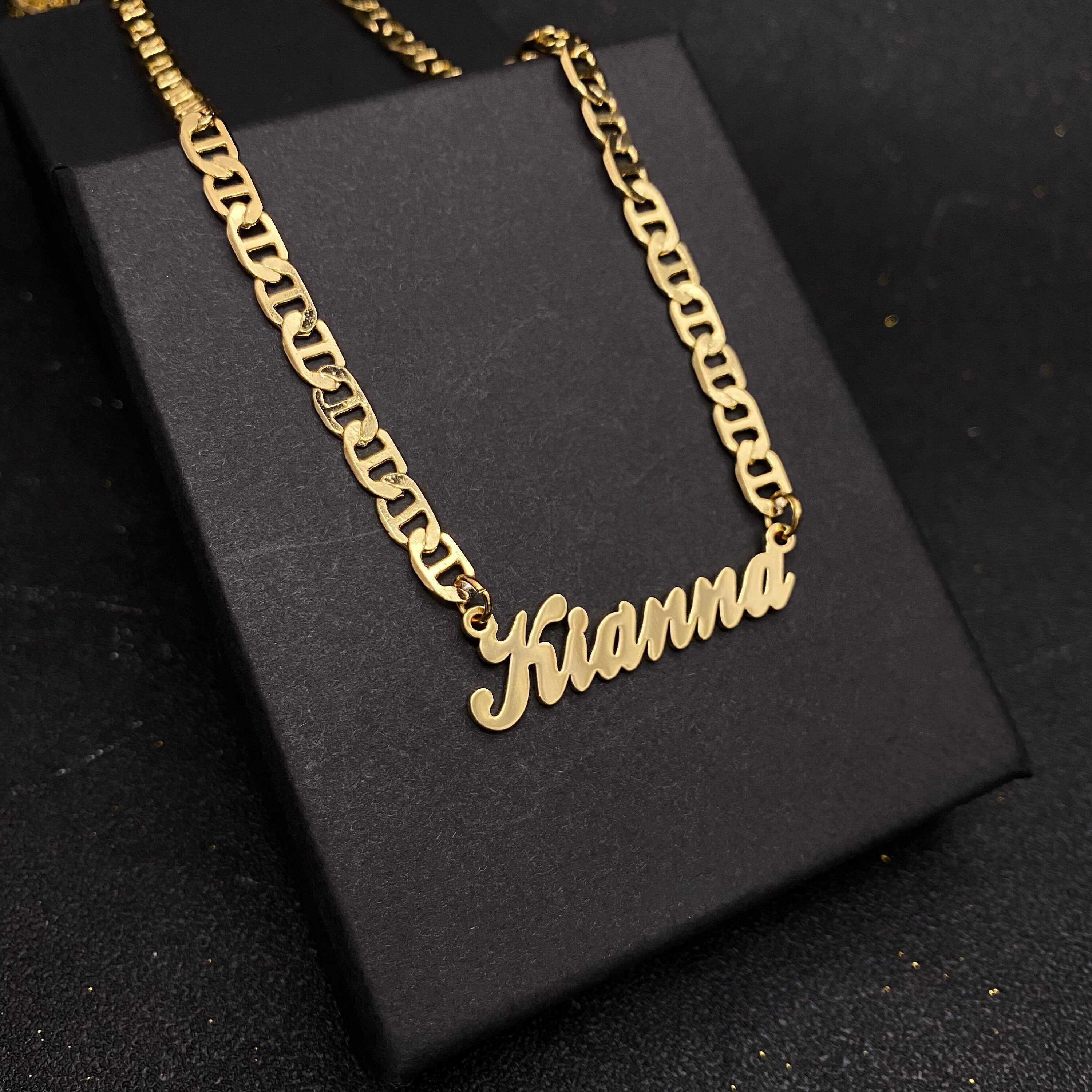 Custom Personalized Name Necklace, Flat Chain Necklace, Gold Name N...