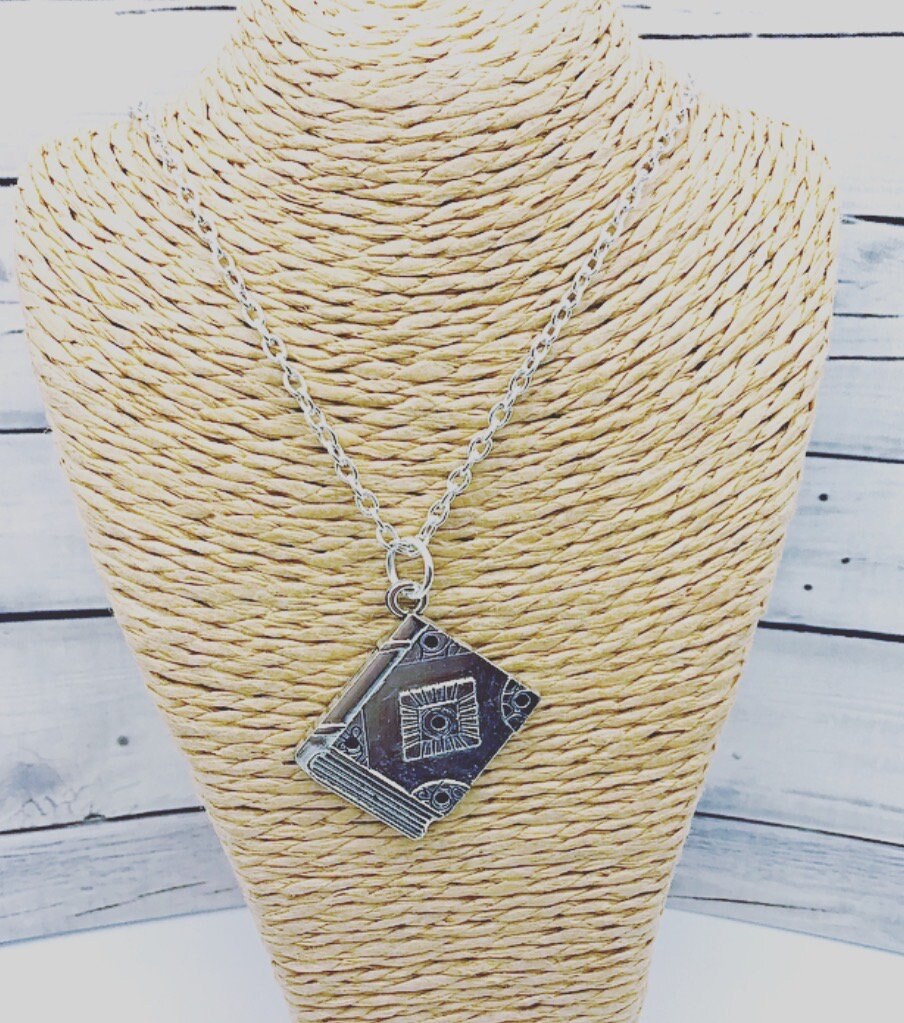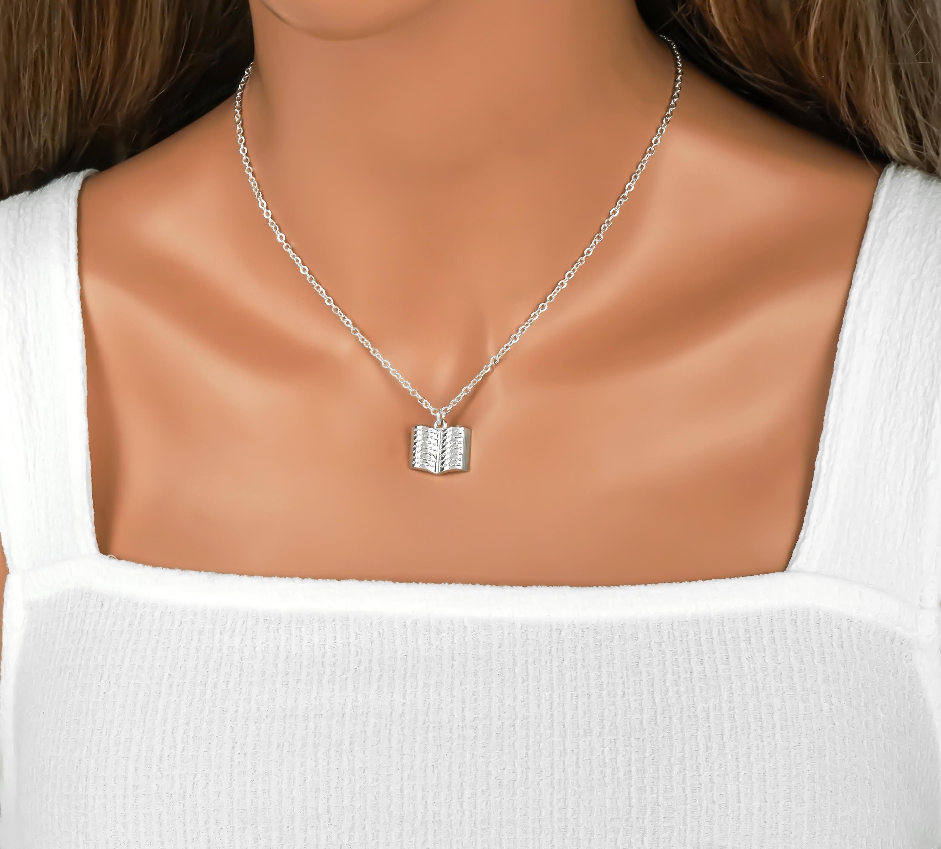 Silver Book Necklace, Spell Book Charm, Readers Gift