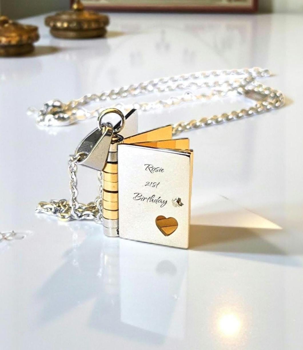Book Locket Necklace, Book Locket Heart Necklace, Personalised Mess...