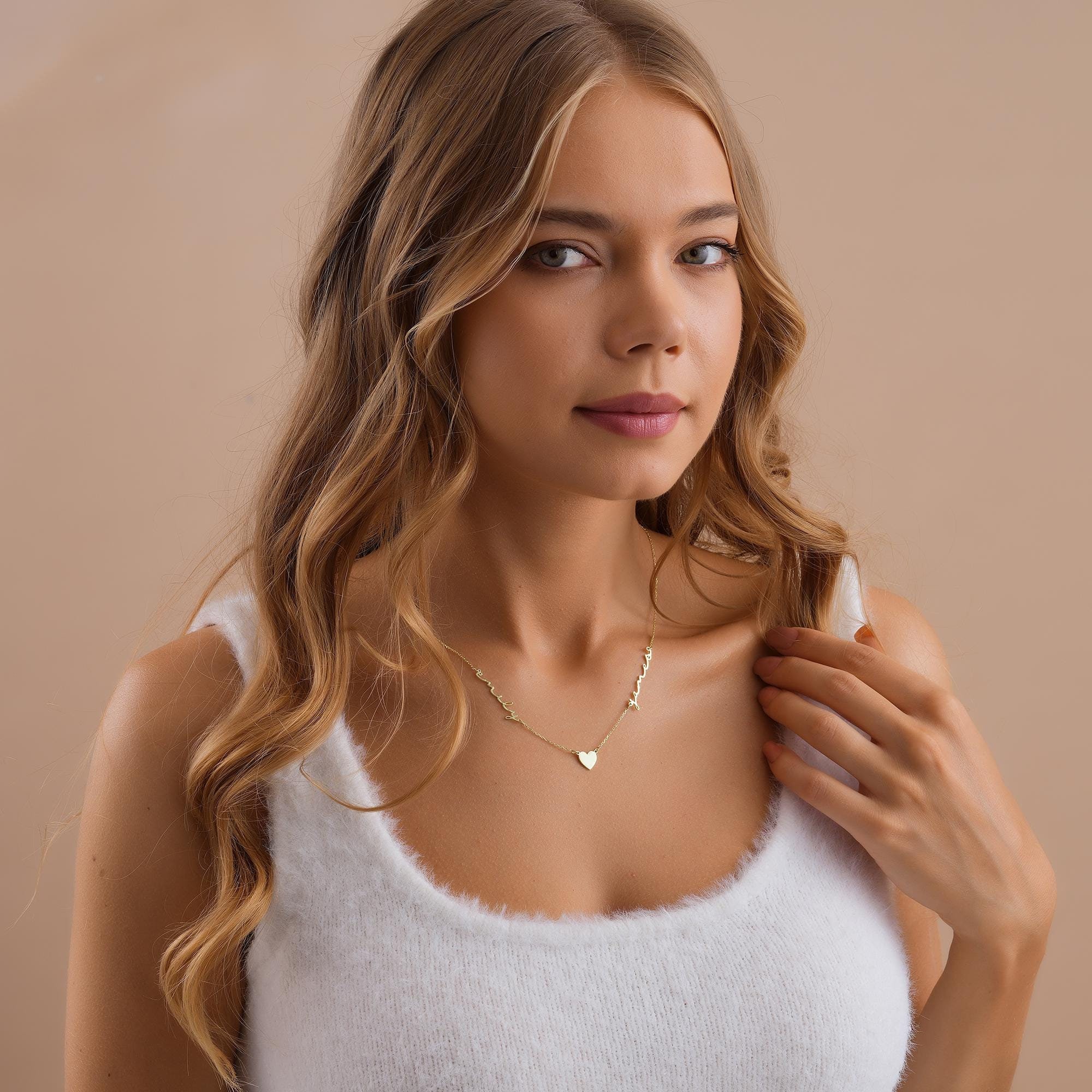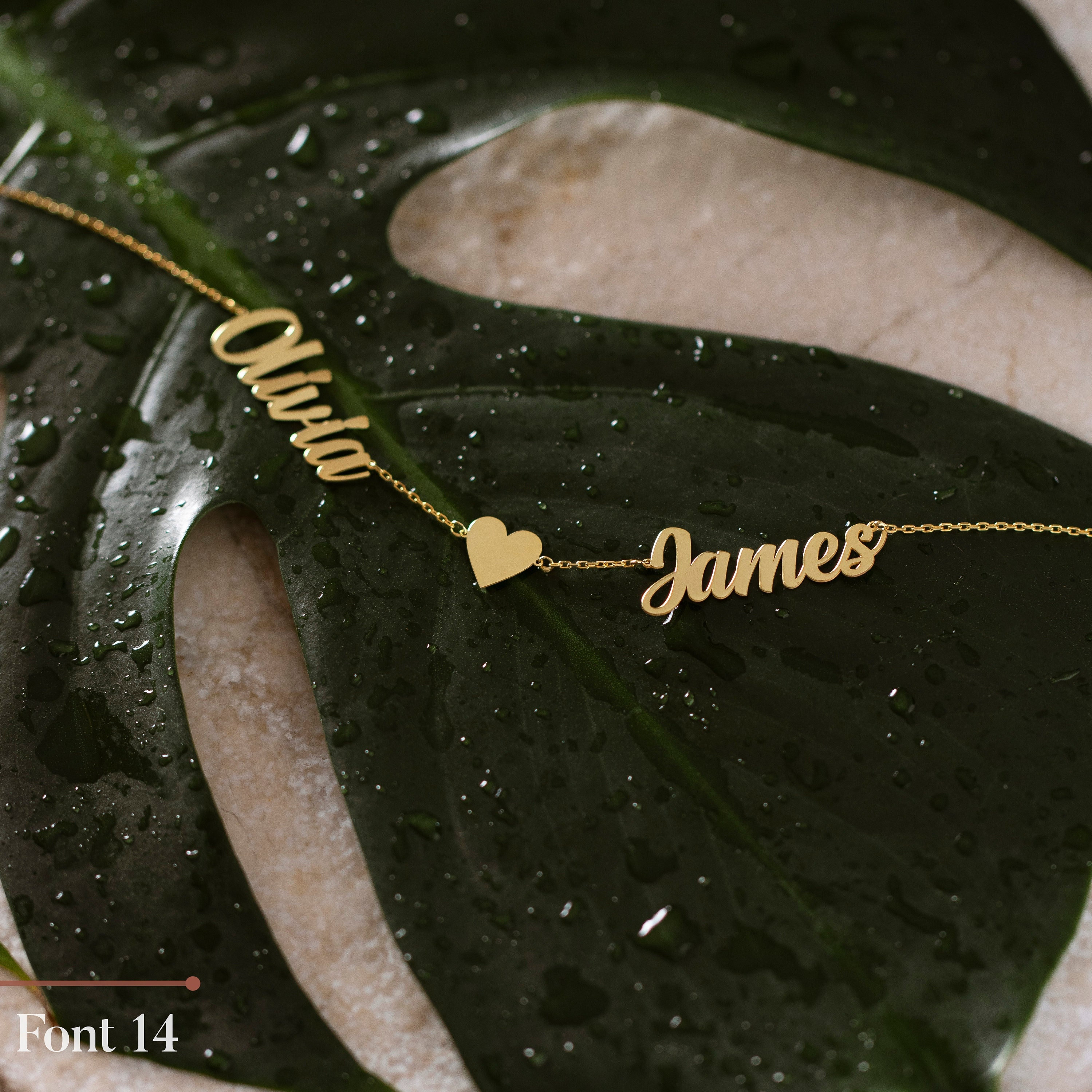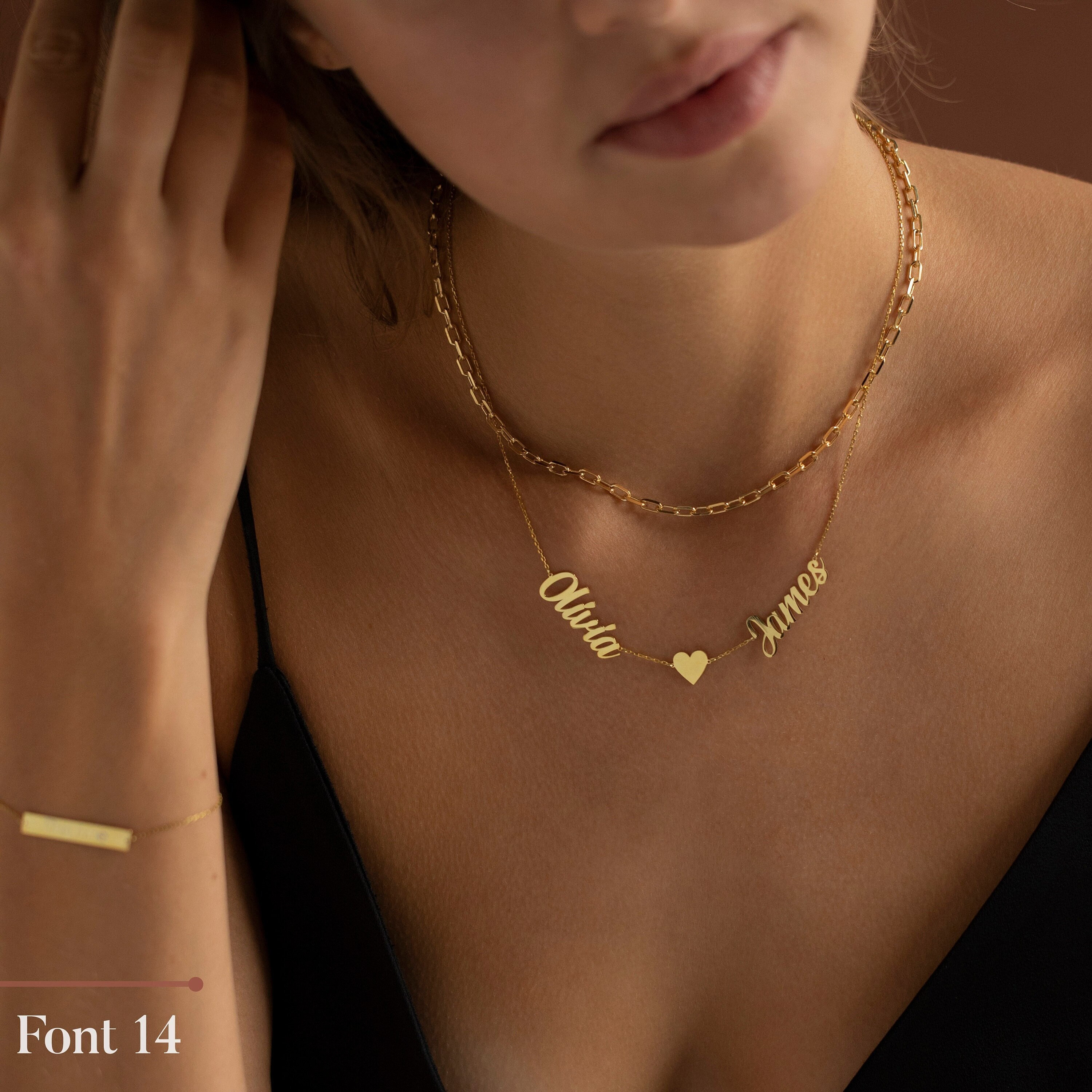 14K Gold Couples Name Necklace, 2 Name Necklace | Heart Name Neckla...