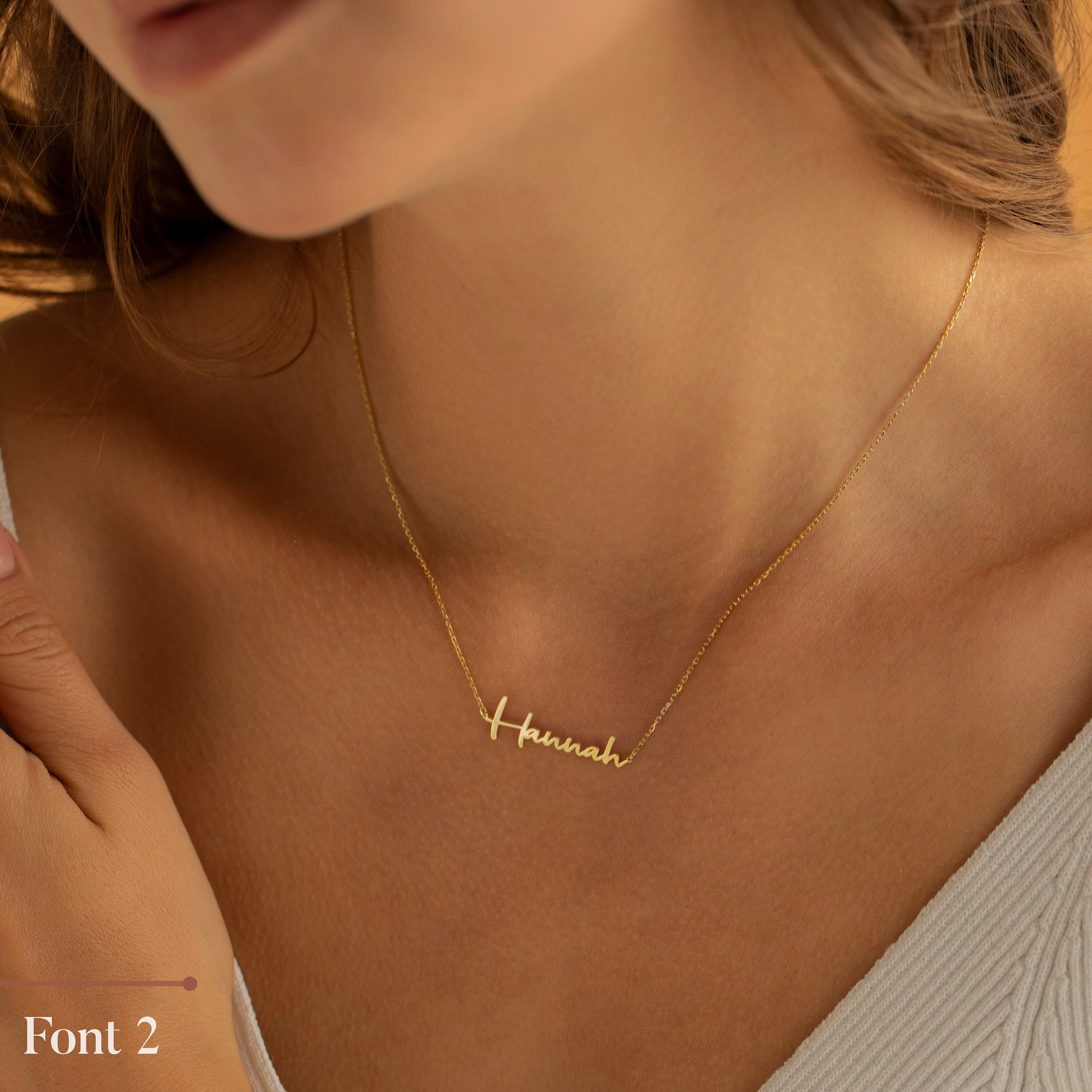 Simple Name Necklace, 14K Gold Name Necklace | Handwriting Name Nec...