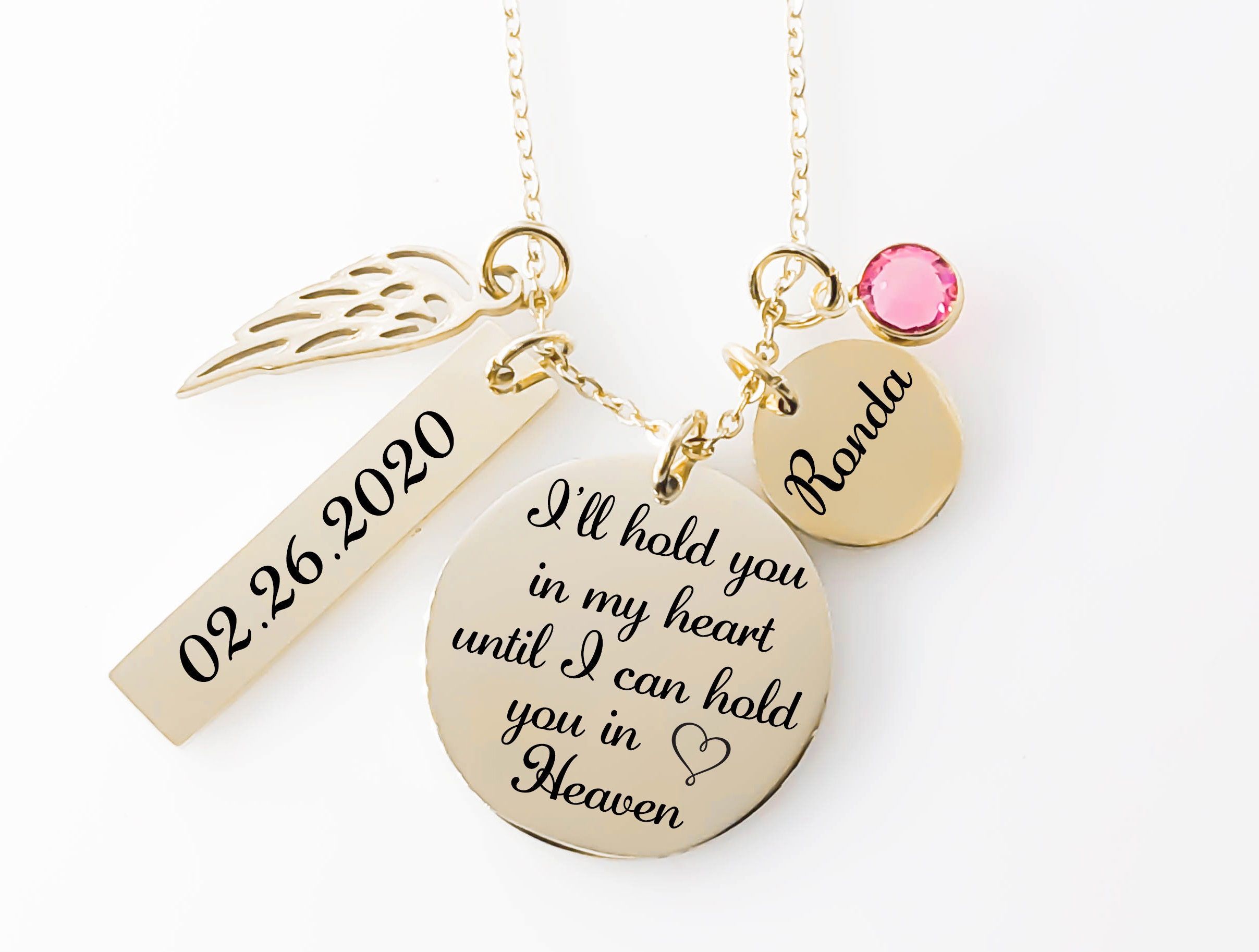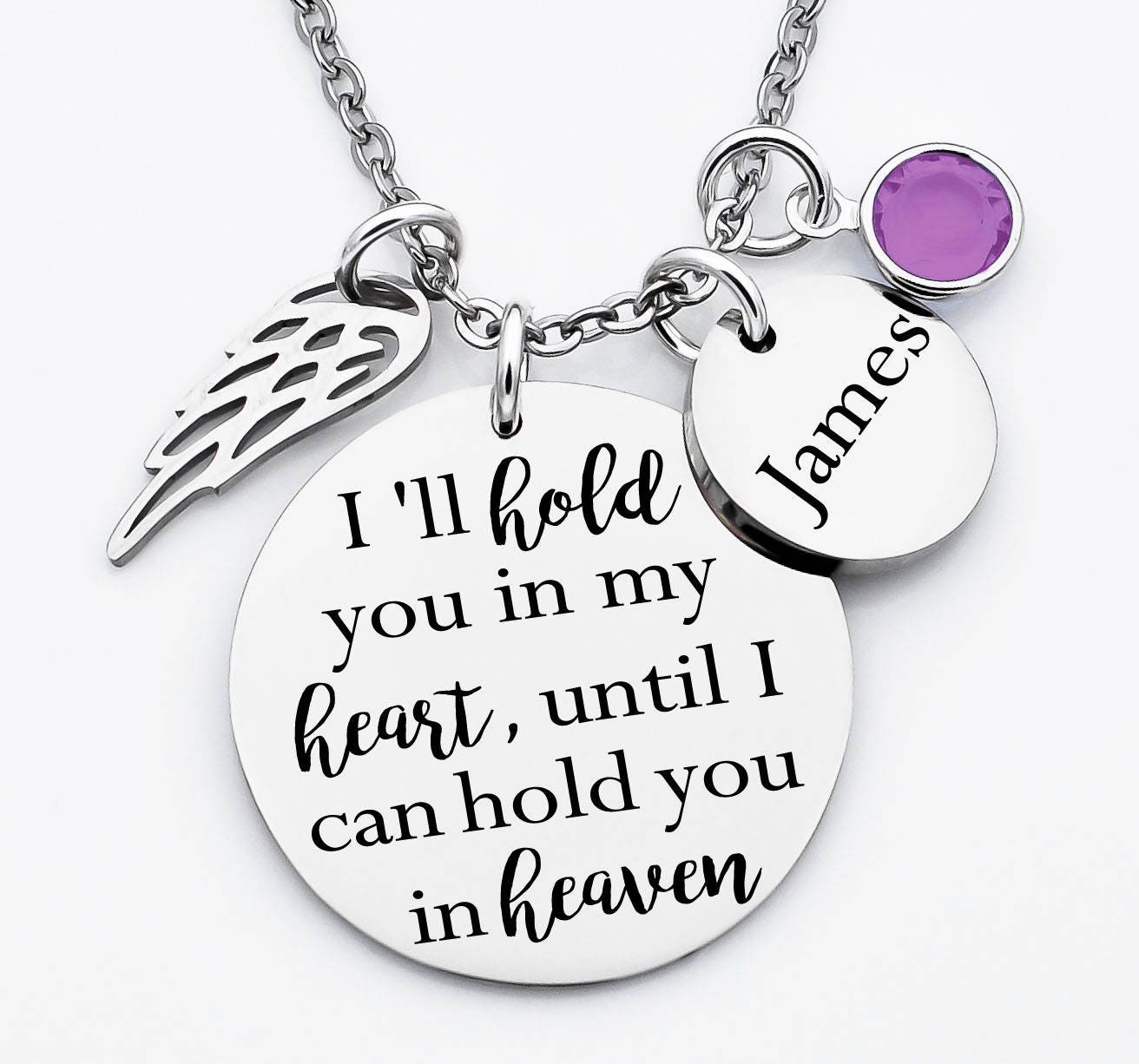 I'll hold you in my heart until I Hold you in Heaven, Personalized Memorial Necklace, Remembrance Ne...