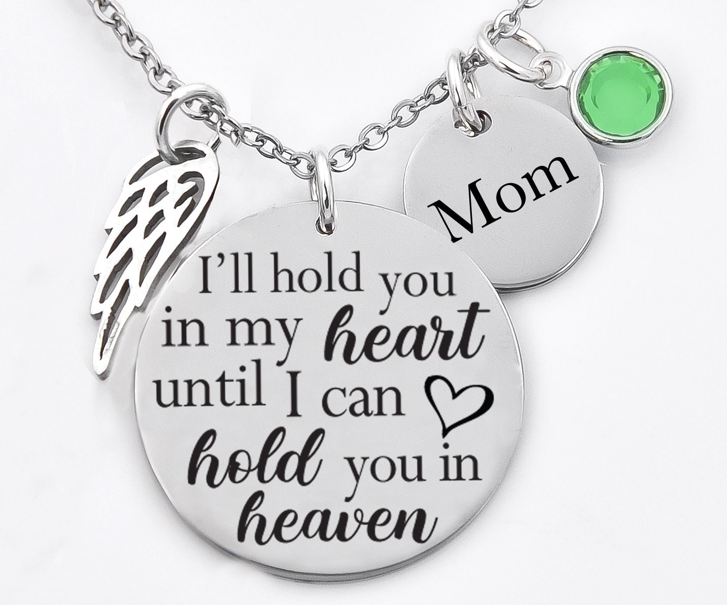 "I'll hold you in my heart, until I can hold you in heaven, Memorial necklace A 1 inch Stainles...