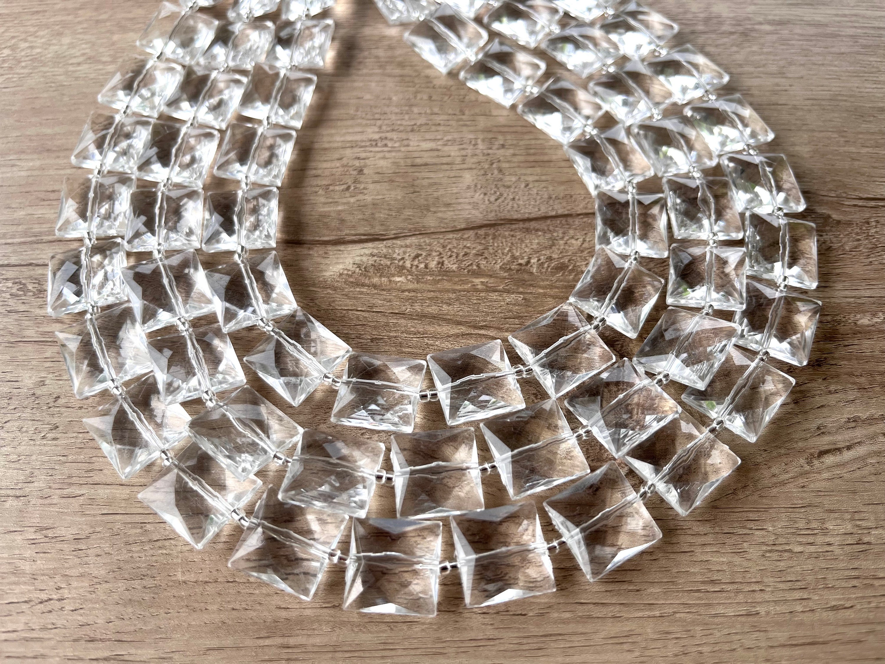 "A beautiful and sparkly beaded multi strand statement necklace made with faceted clear square ...