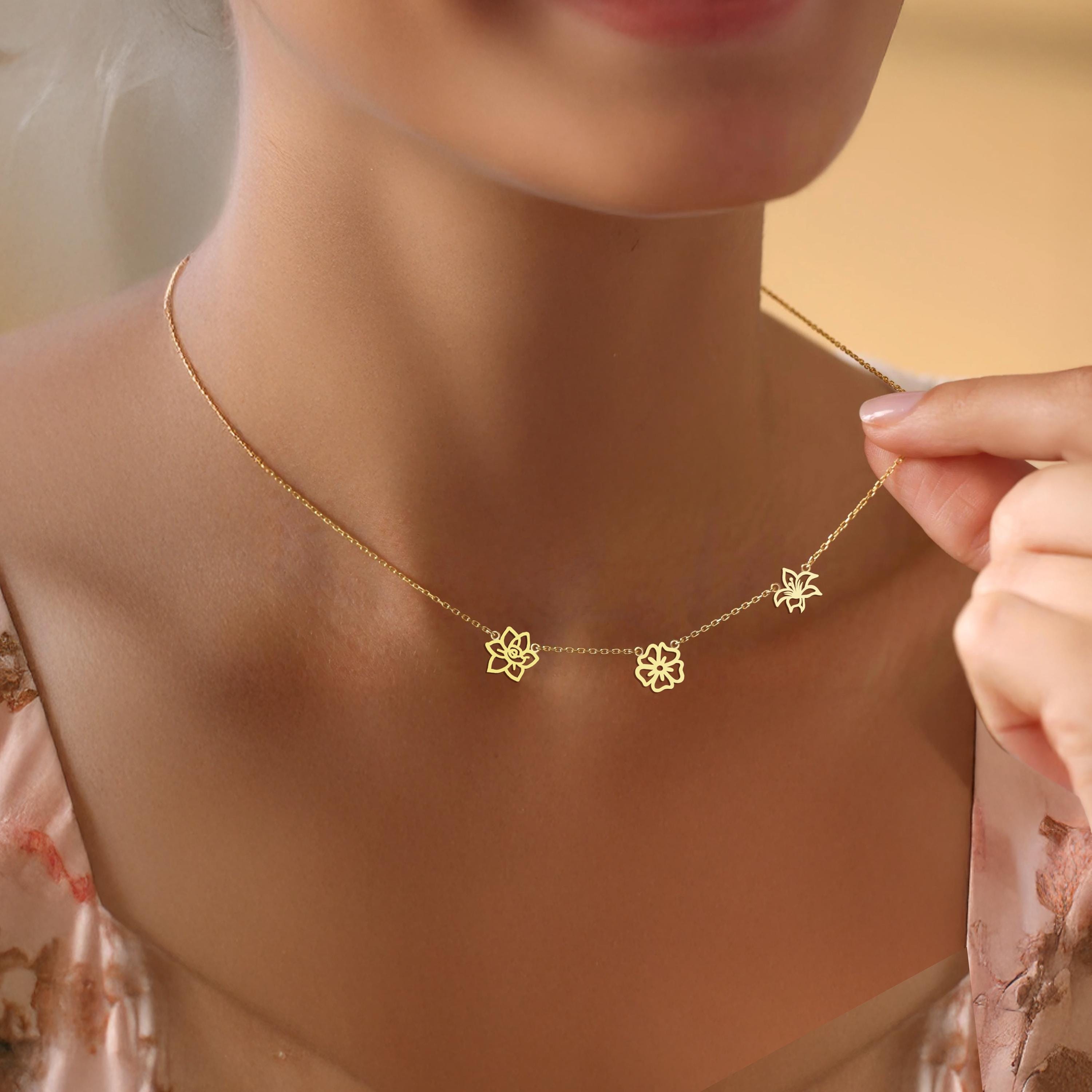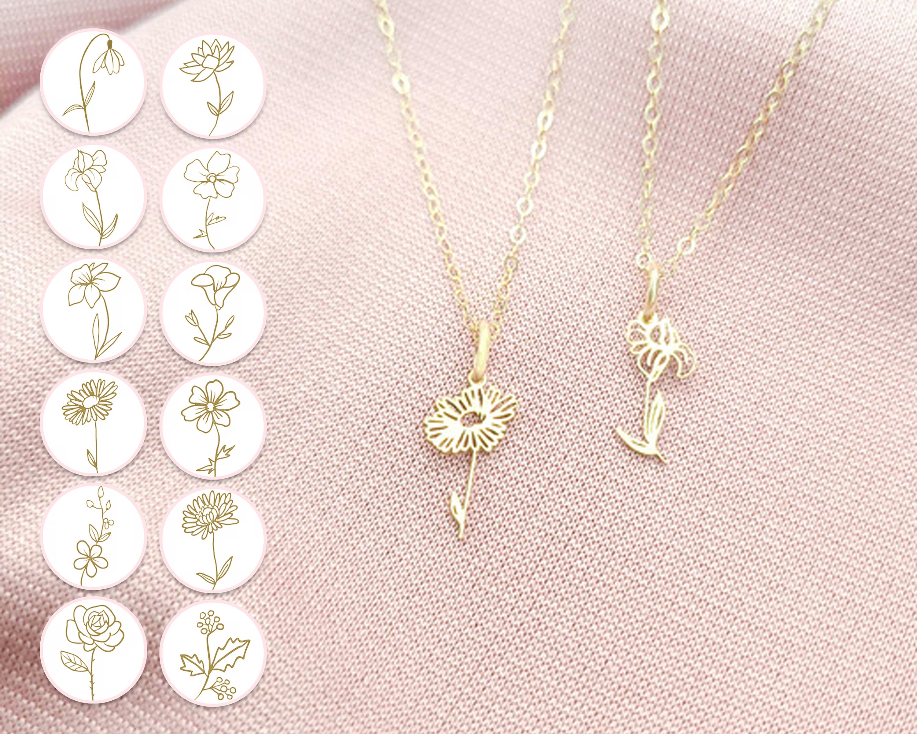 Gold Birth Flower Necklace, Birth Flower Jewelry, Birth Flower Char...