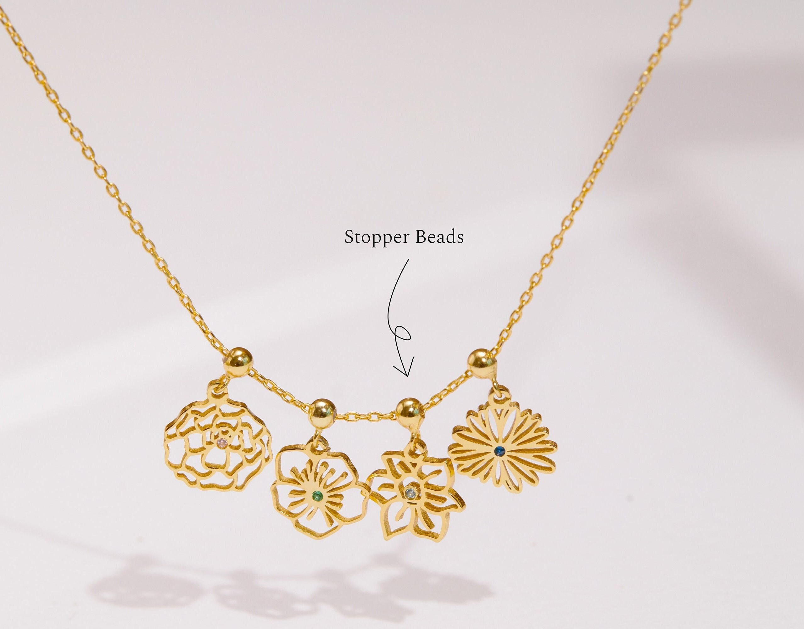 Birth Flower Necklace * Combined Birth Flower Necklace * Stopper Be...