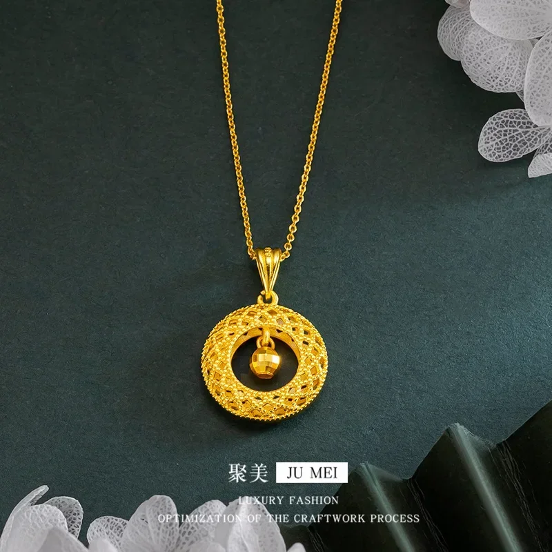 9999 24K real gold store same style women's necklace gold safety lock chain beautiful high-end jewel...