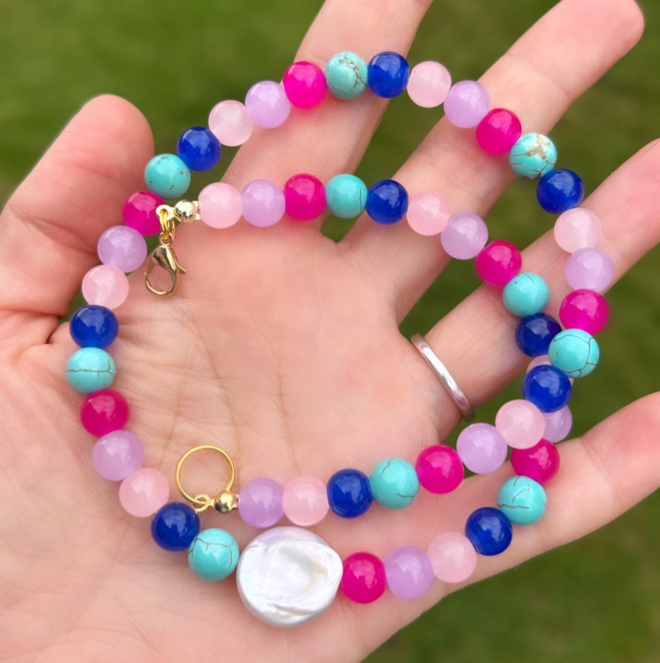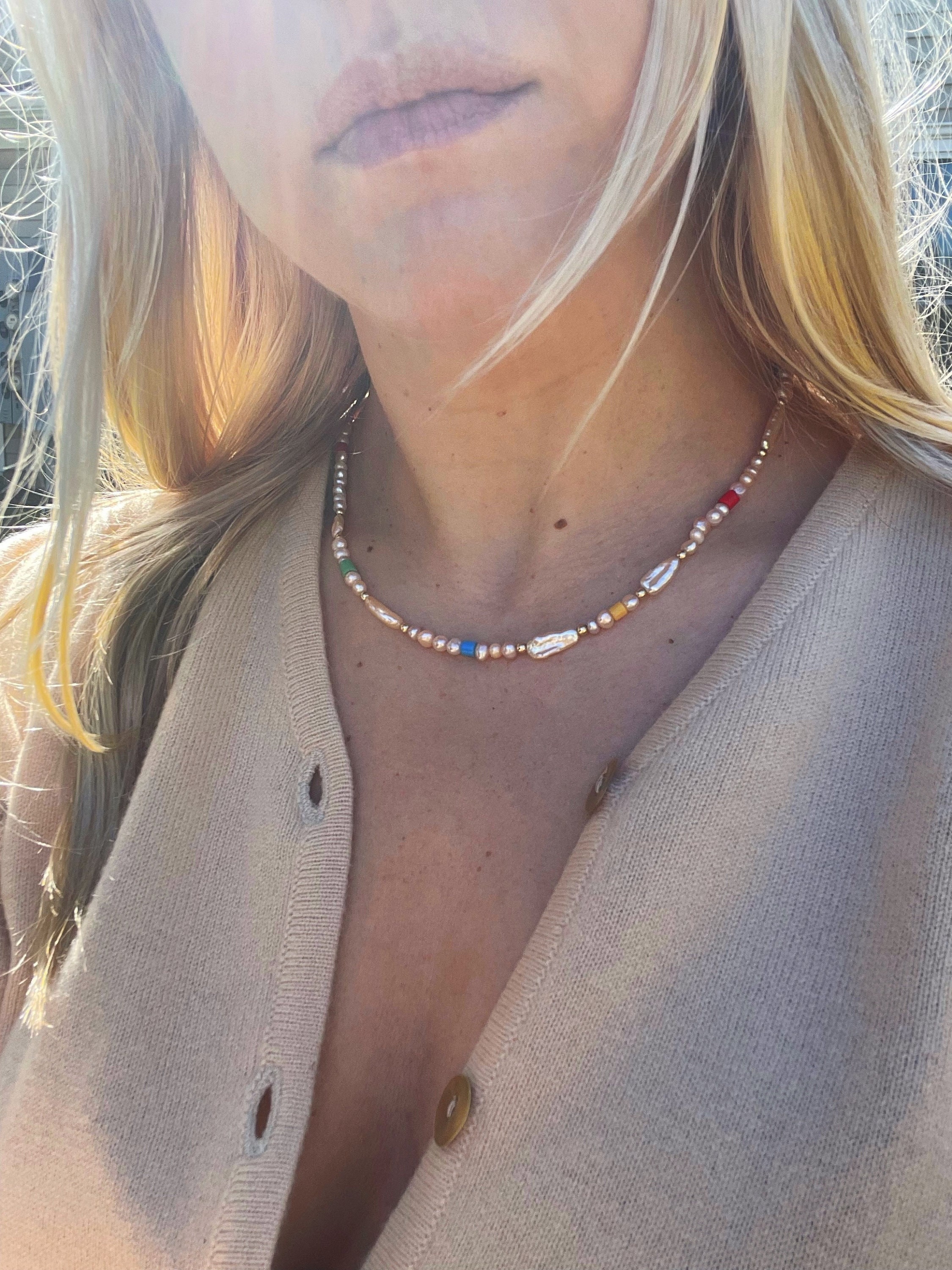 "The Montana Necklace + Freshwater, baroque pearls of different colors + Colorful beads (includ...