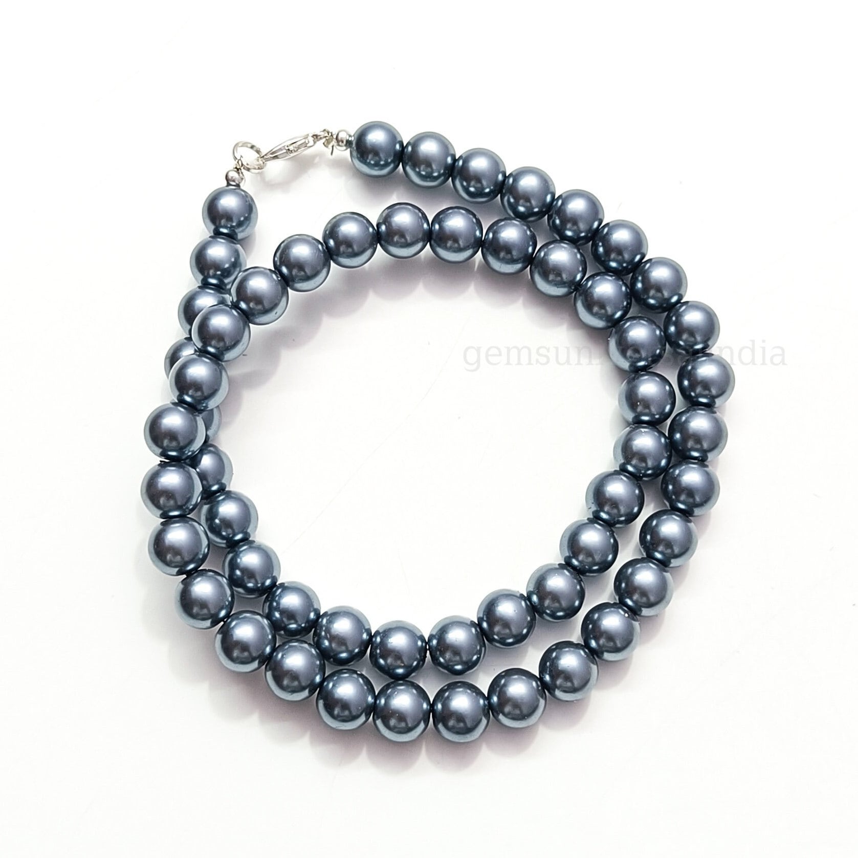 Grey Pearl Round Beads Necklace, Glossy Pearl Beaded Necklace, Shel...