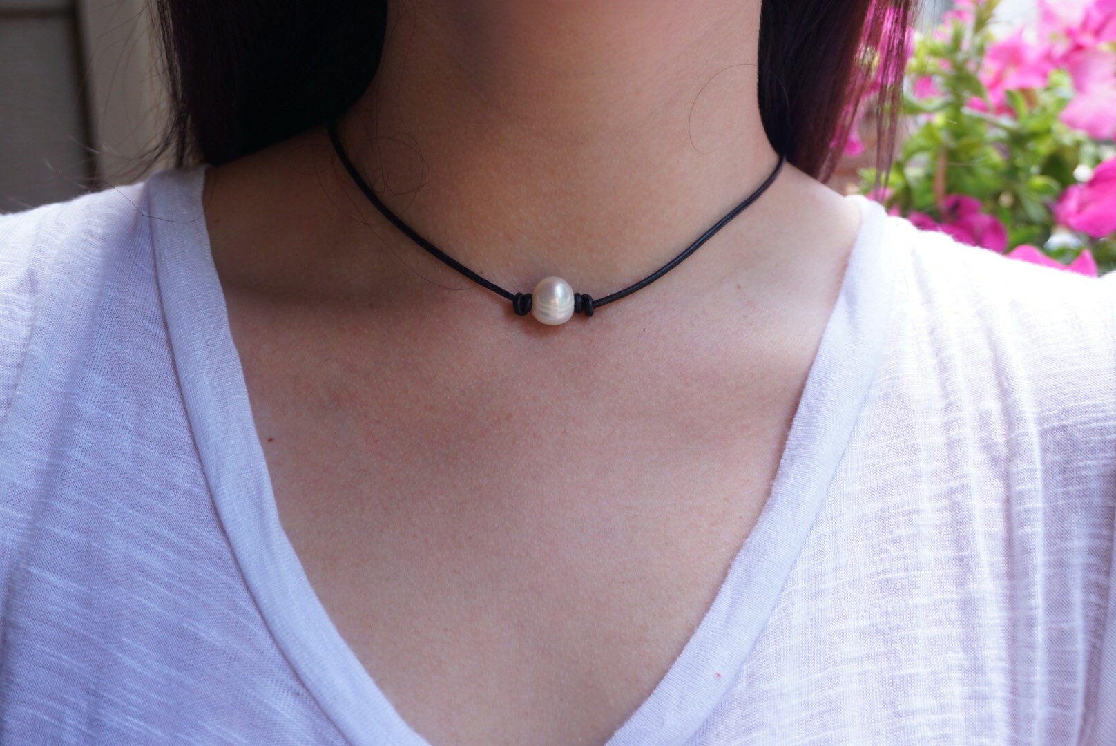 Pearl Choker , a must have for any jewelry collection. This subtle leather necklace has a real fresh...