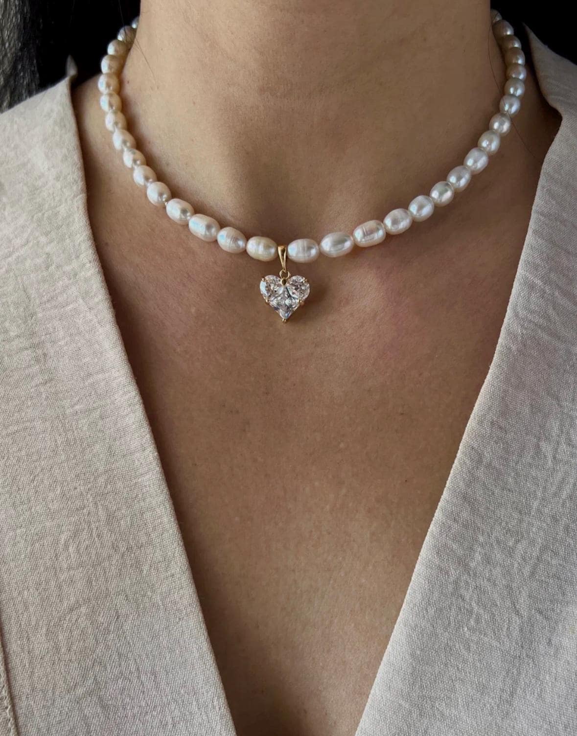 Pearl Choker, Pearl Necklace, Pearl Heart Necklace, Pearl Choker Ne...