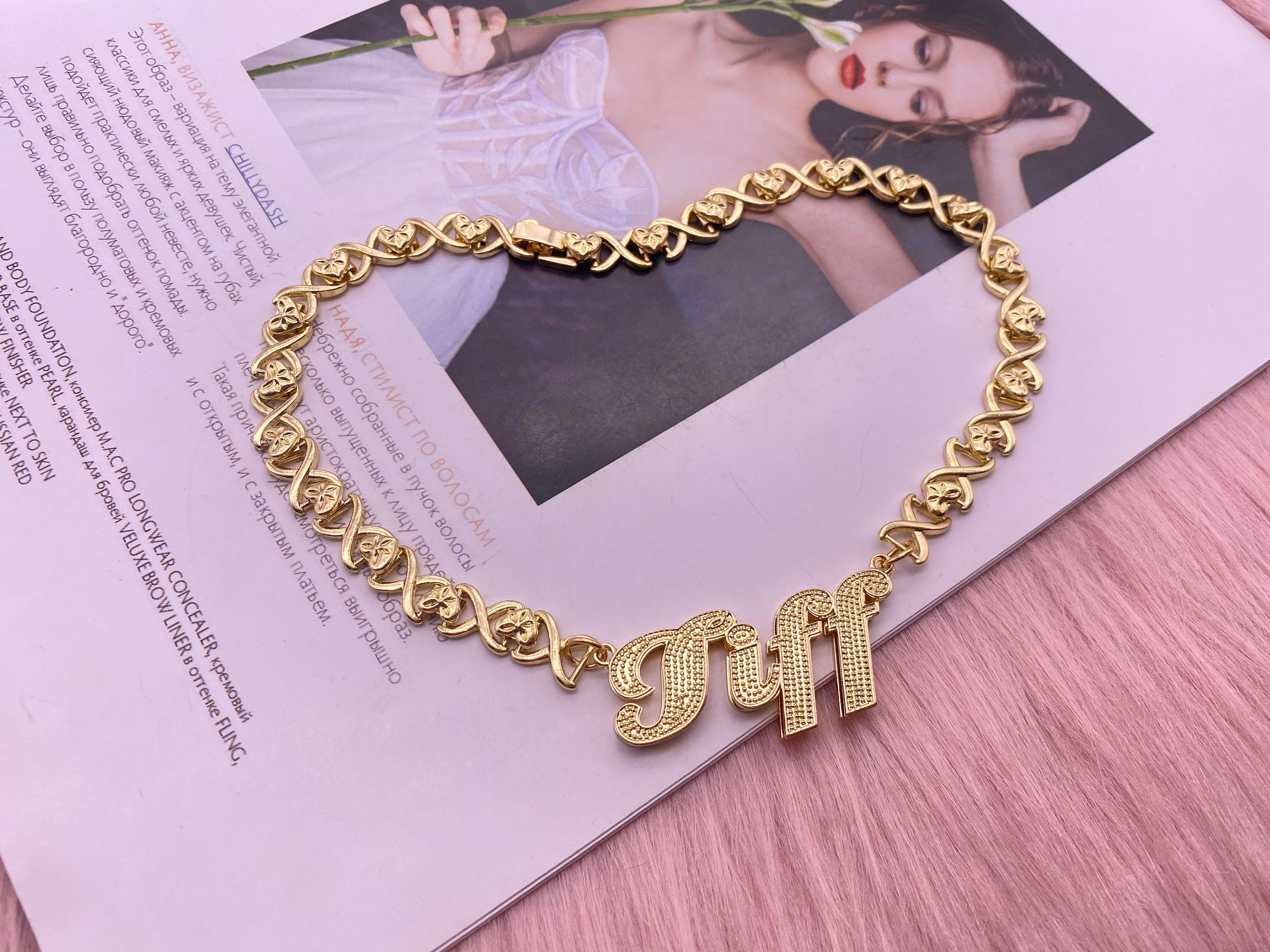 Custom Name Nameplate Necklace With XO Chain, Gift For Women, Doubl...
