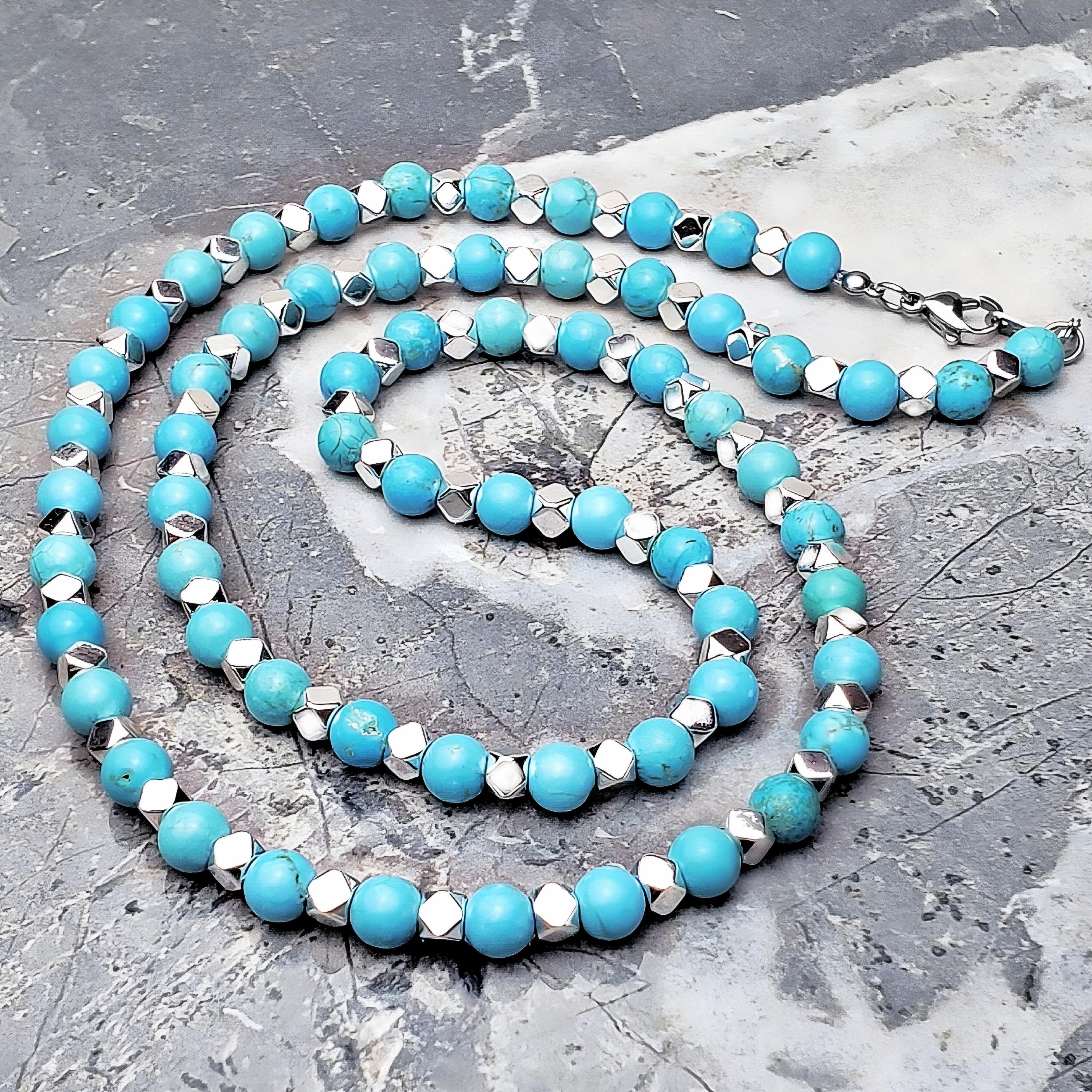Men's PLATINUM & TURQUOISE Necklace | Men's Platinum Silver Hem...
