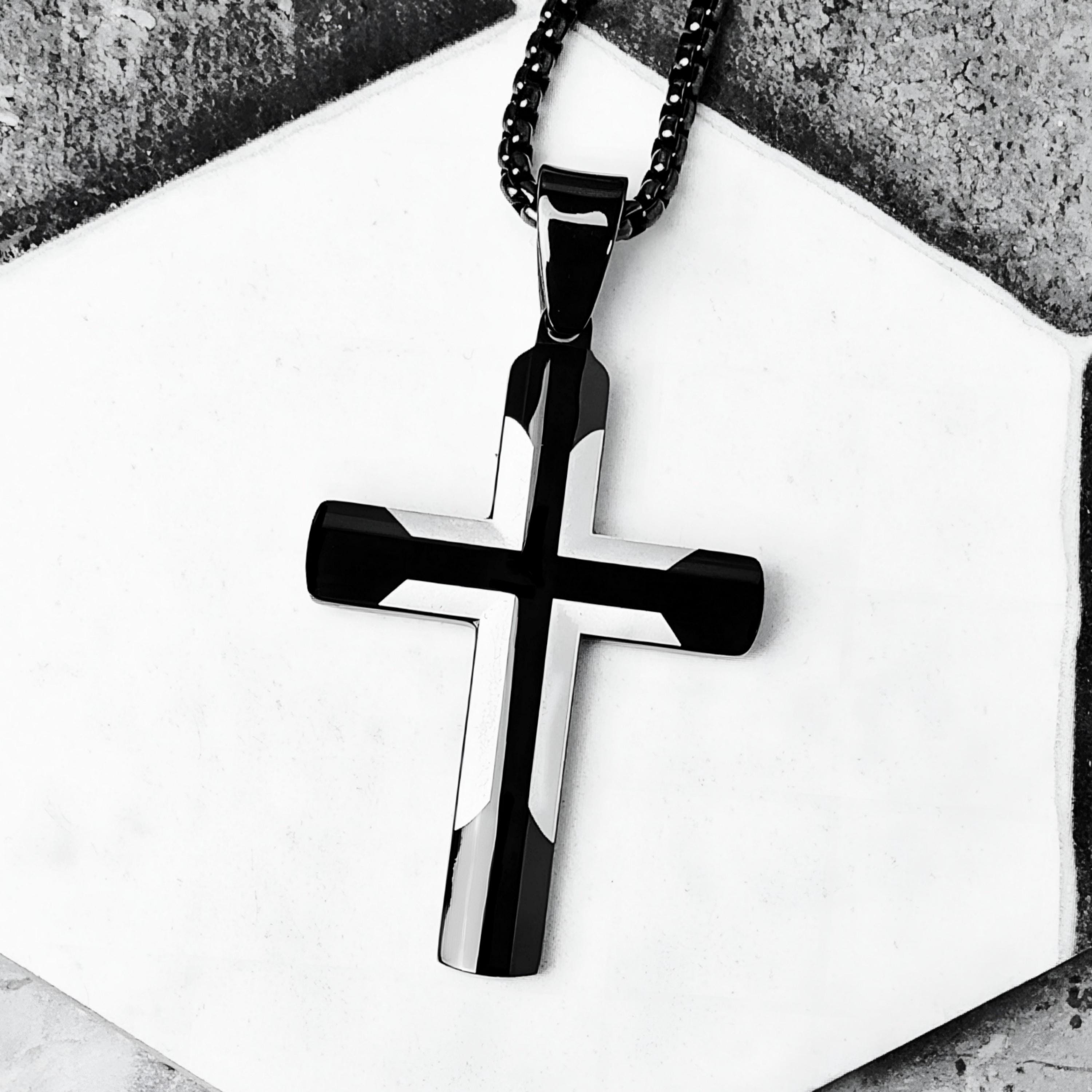 Men's BLACK PLATINUM CROSS Necklace | Men's Platinum & Black St...