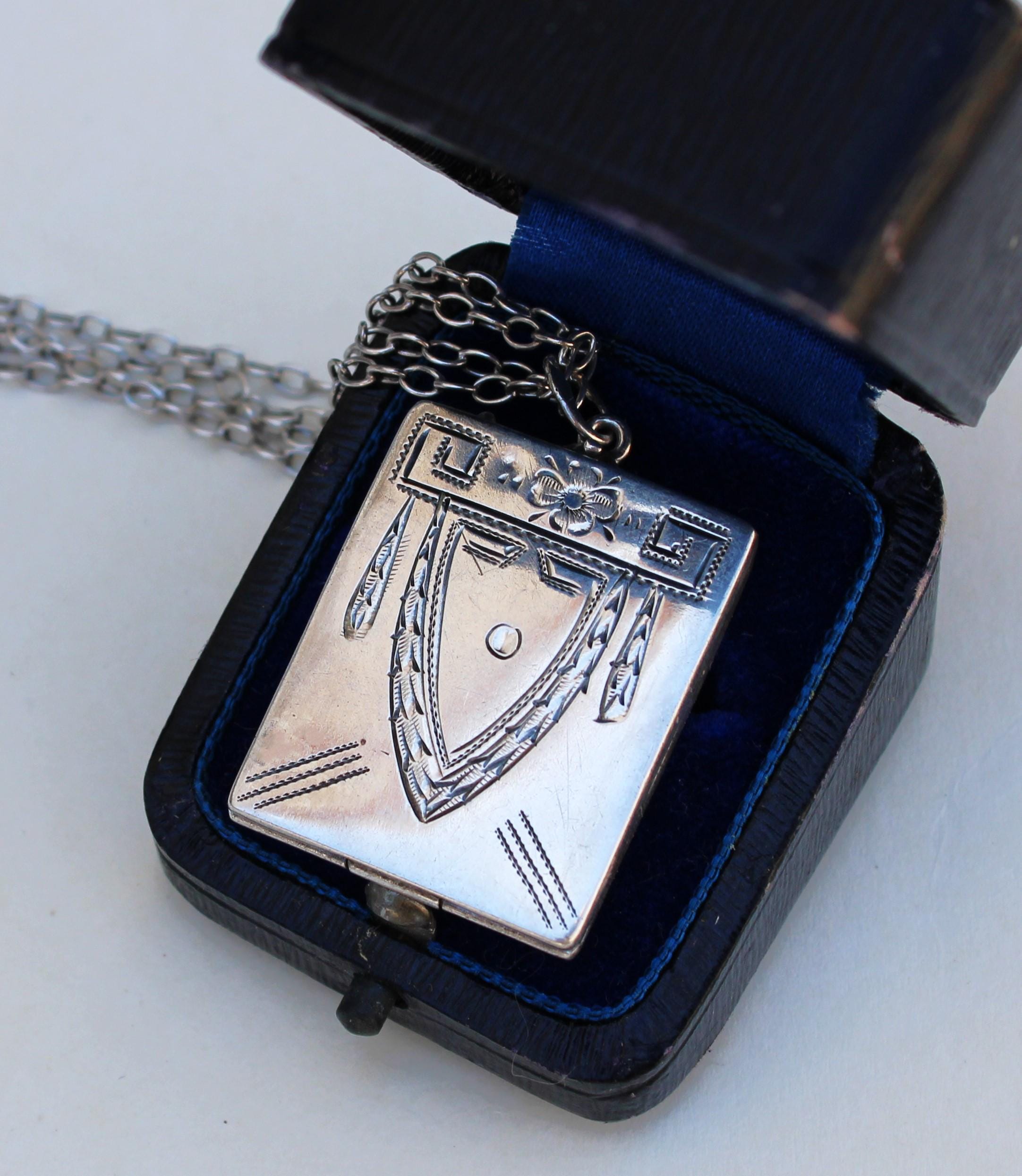 Antique silver pocket watch chain / lorgnette chain with photo locket pendant. Length: 70 cm / 27.5 ...