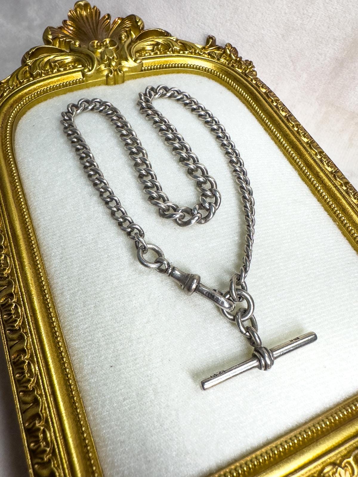 Antique English Silver Albert Chain | 14 Inch Curb-Link Pocket Watc...