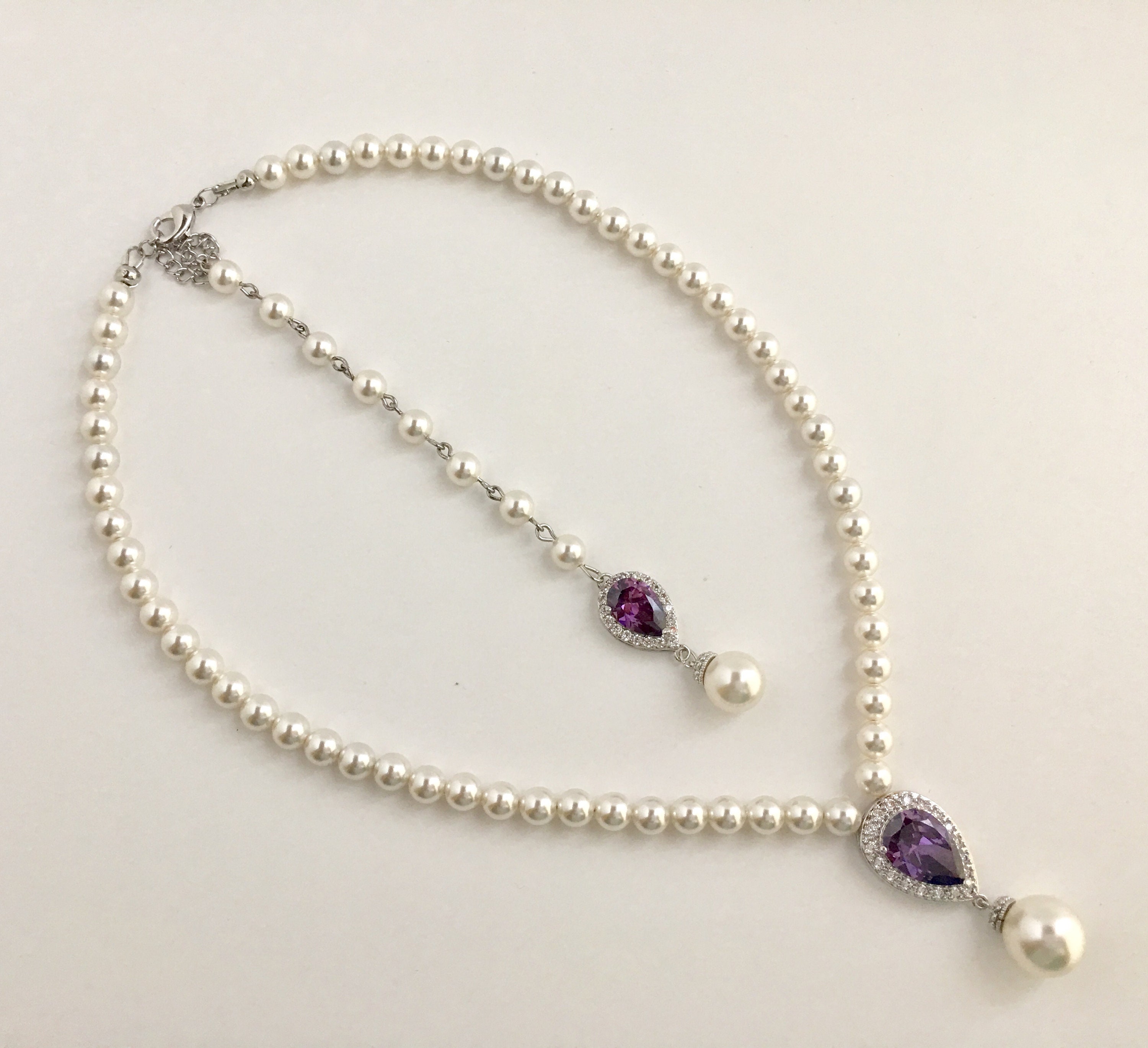 Amethyst Necklace Purple Backdrop Pearl Necklace Purple Wedding Cry...