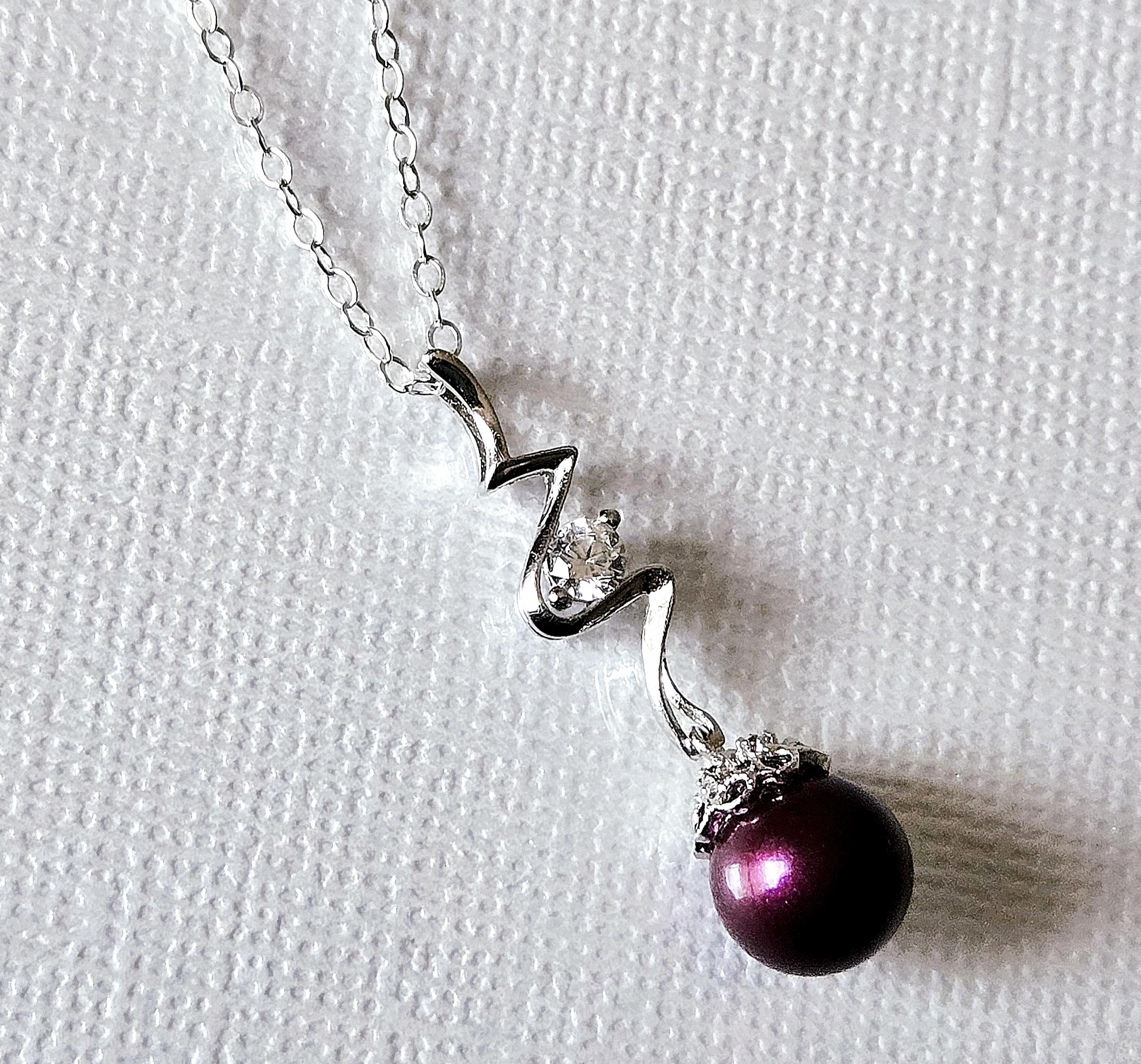 Blackberry Purple Pearl Drop .925 Sterling Silver CZ Dainty Wedding Bridal Pendant Necklace with .92...