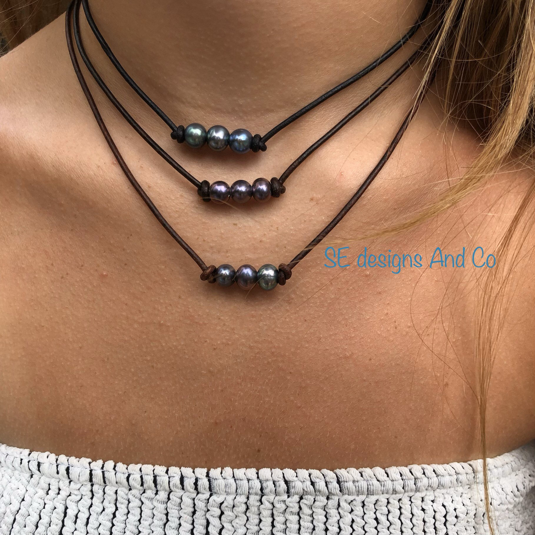 Freshwater PEACOCK PEARLS hand strung on soft LEATHER cording to make a perfect choker or necklace, ...
