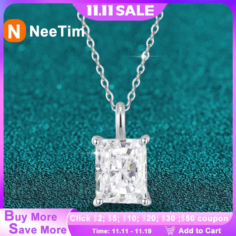 NeeTim 1ct 2ct 3ct 4ct Radiant Cut D VVS1 Moissanite Necklace for W...