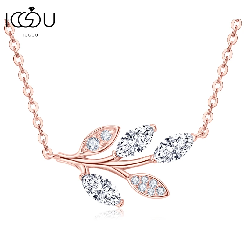 IOGOU 6x3mm Marquise Cut Moissanite Leaf Pendant Diamond Necklace for Women Silver 925 Real Jewelry ...