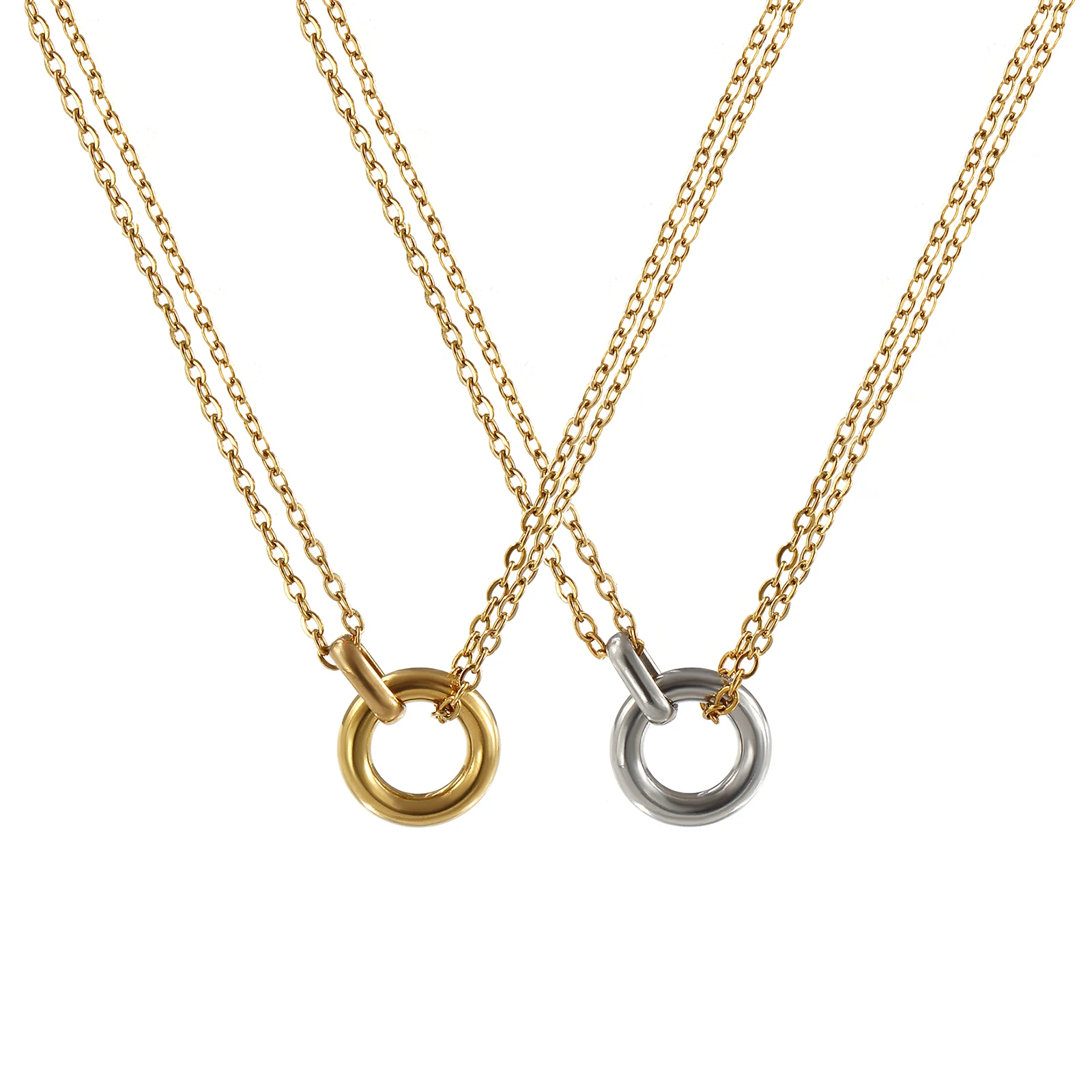 Minimalist Circle Pendant Necklace 18K Real Gold Plated Stainless Steel Ring Charm Necklace Jewelry ...