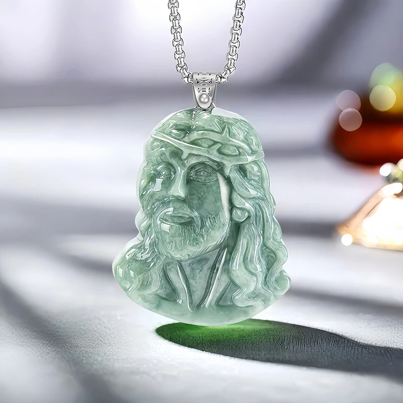 Green Myanmar Jade Jesus Pendant Necklace Carved Vintage Gemstone Real Burmese Jadeite Lucky Choker ...
