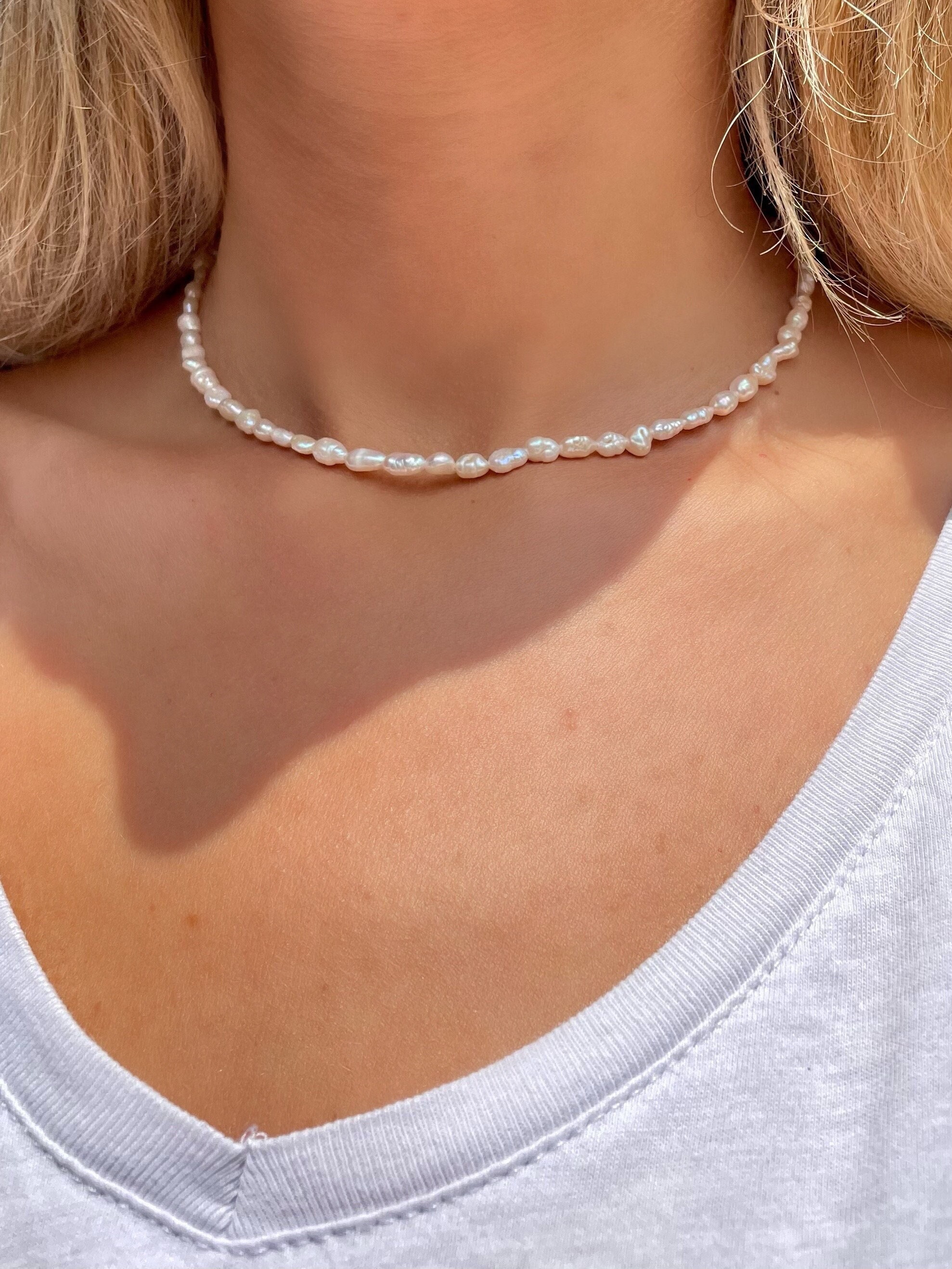 Tiny Pearl Choker Gold, Mini Pearl Necklace, Small Real Pearl Neckl...