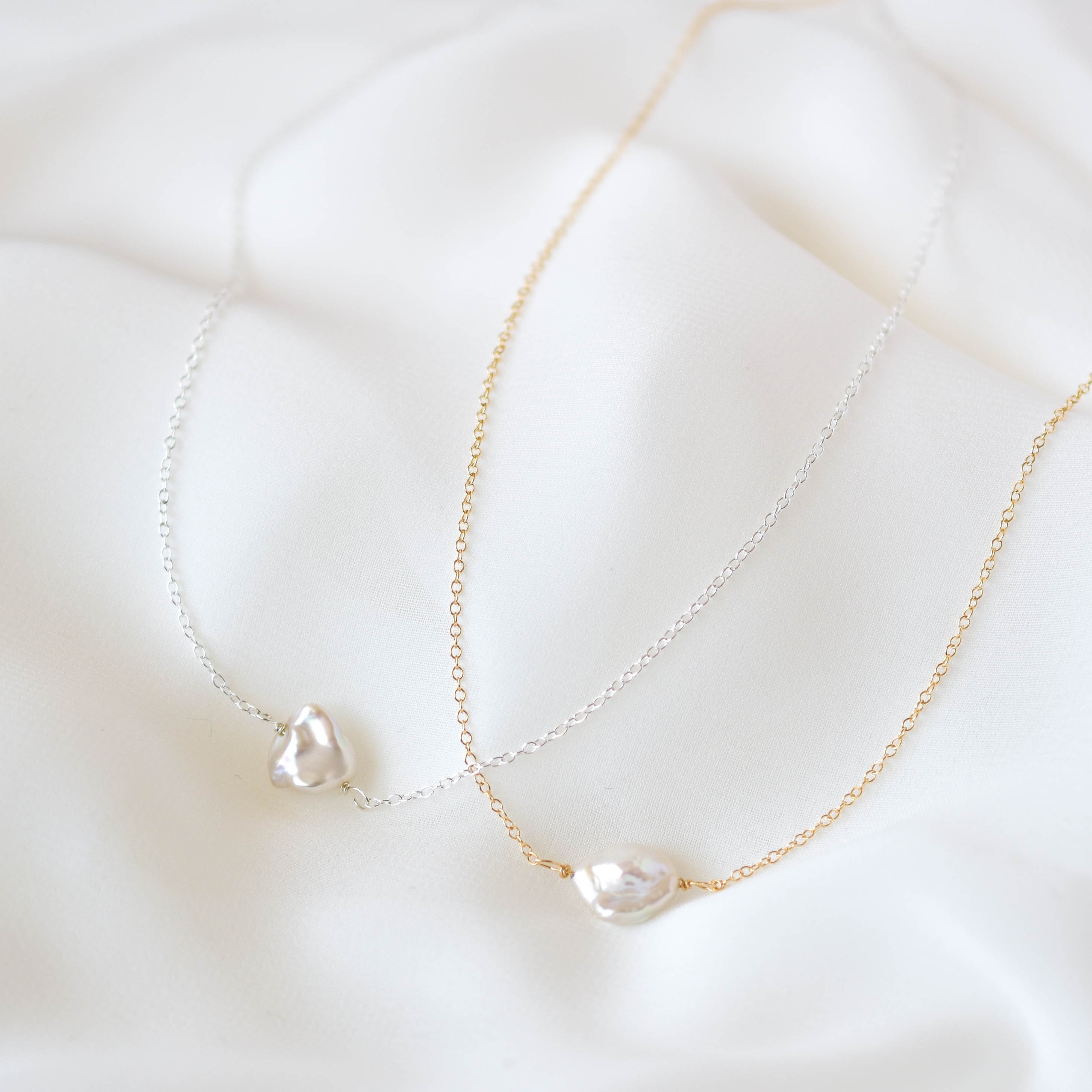 Single Pearl Necklace - Simple Pearl Necklace, Keshi Pearl Necklace...