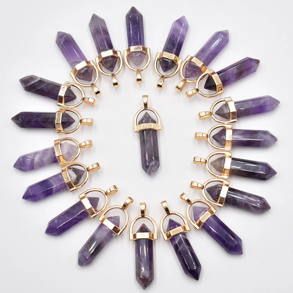 Fahsion bestselling Natural stone amethysts Charms Hexagonal healing Reiki Point pendants for jewelr...