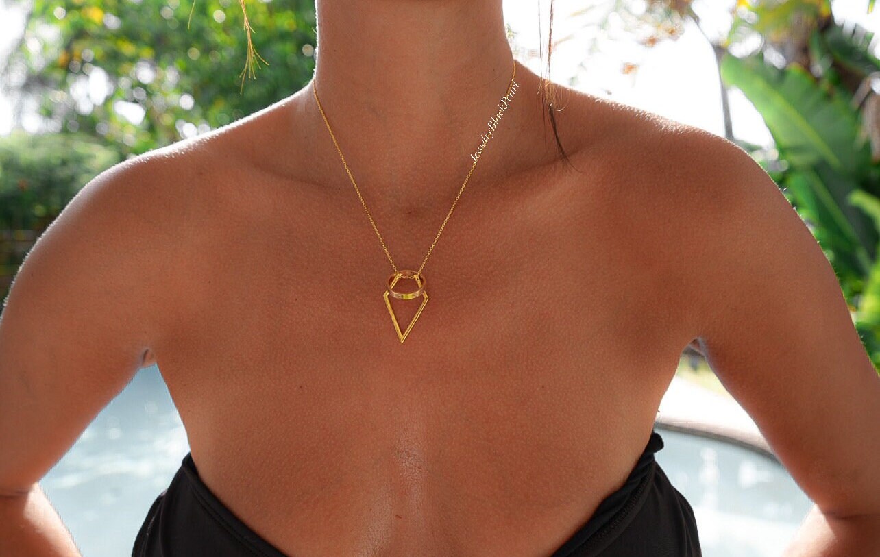 14k gold minimalist geomatric ring holder pendant necklase,with all...