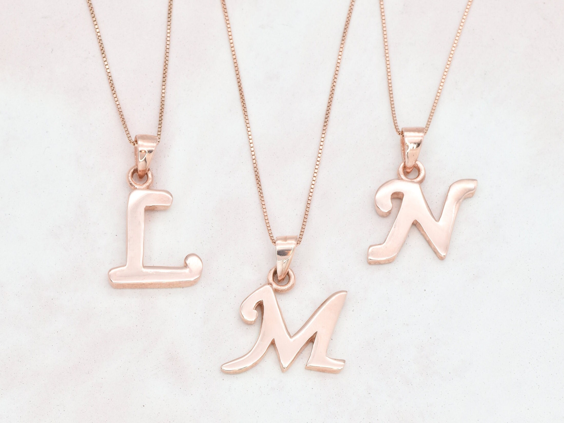 Rose Gold Letter Pendant made of 18k Rose Gold Vermeil over Solid 925 Sterling Silver made to last. ...