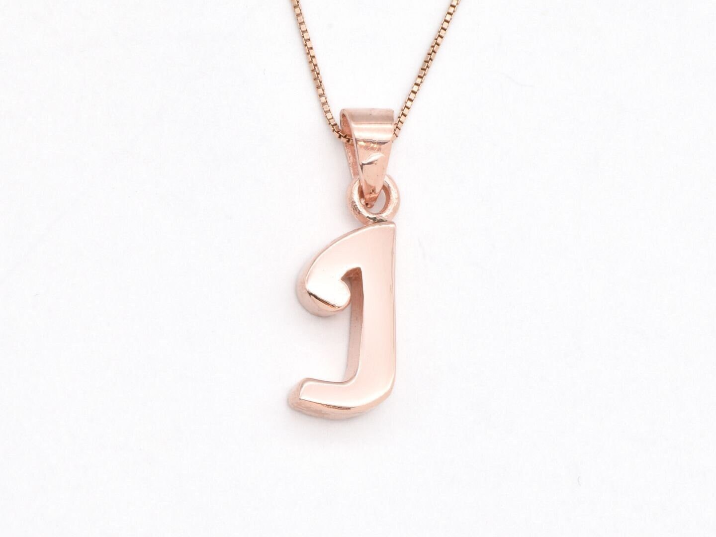 Rose Gold Letter J Pendant, Initial J Pendant, Rose Gold Letter Pen...