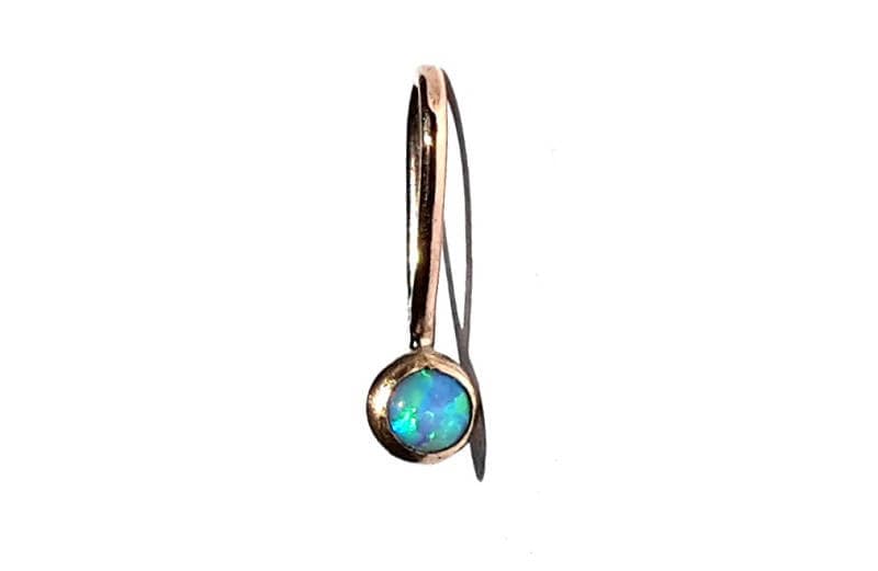 Tiny handmade pendant : round blue Opal (3 mm across), set in 14k solid rose gold with a relatively ...