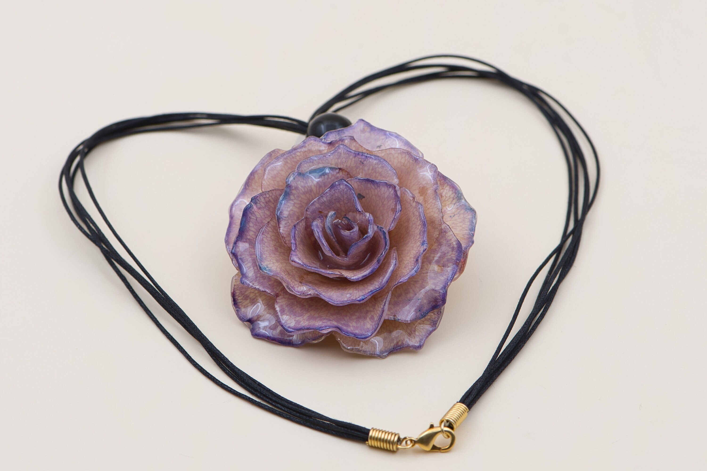 Necklace with a real rose in lavender, rose pendant, rose necklace,...