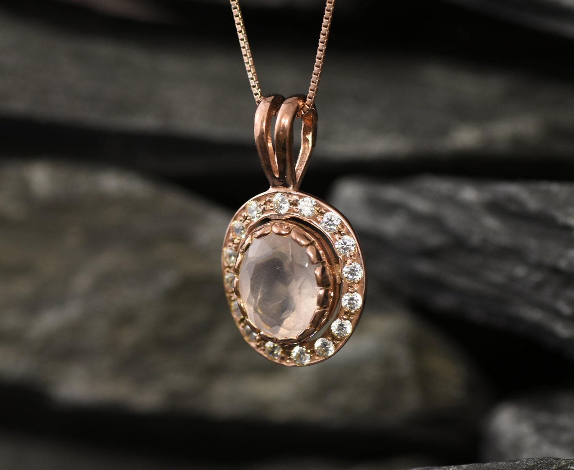 Rose Gold Rose Quartz Pendant, Rose Quartz Pendant, Vintage Pendant...